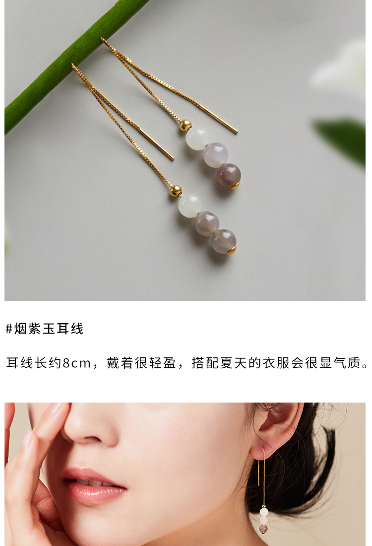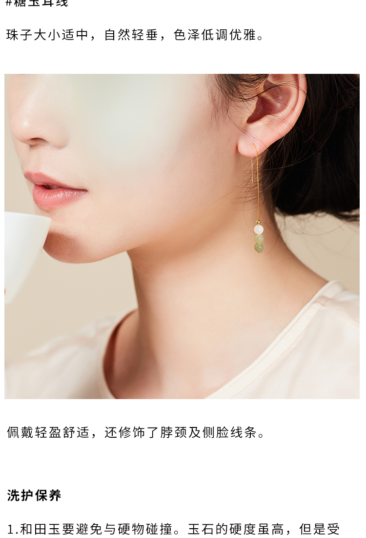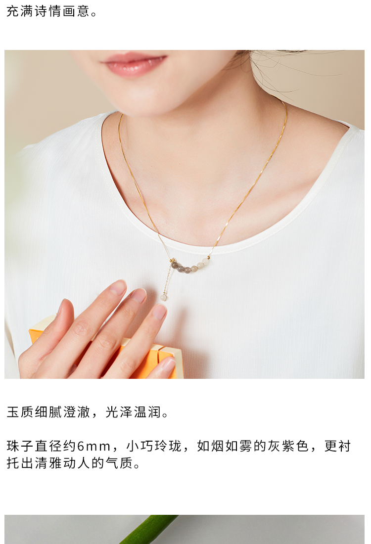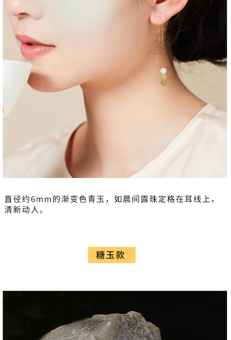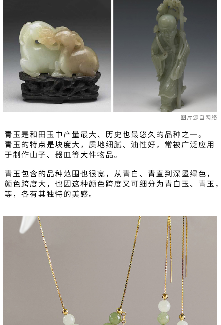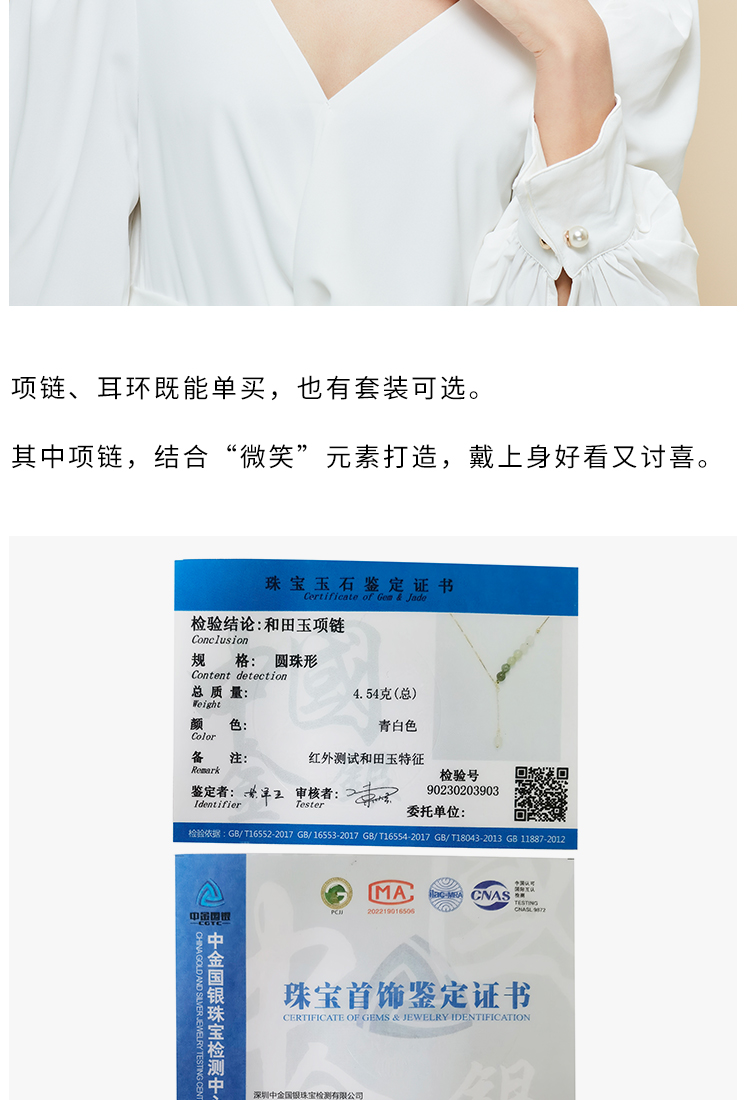 清雅渐变色和田玉首饰 项链 耳环 套装