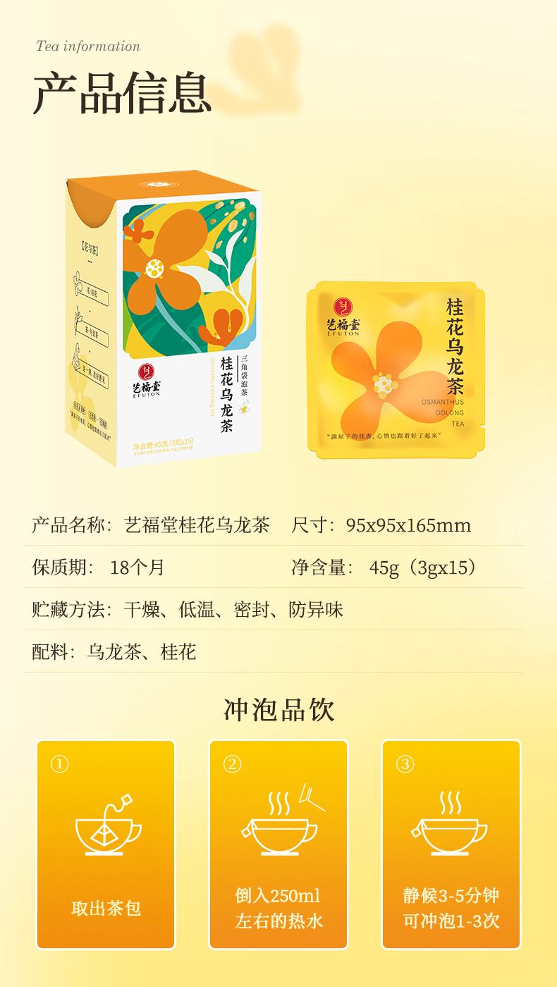 艺福堂 桂花乌龙茶 秋冬必备 清润好茶 花茶组合茶 45g/盒