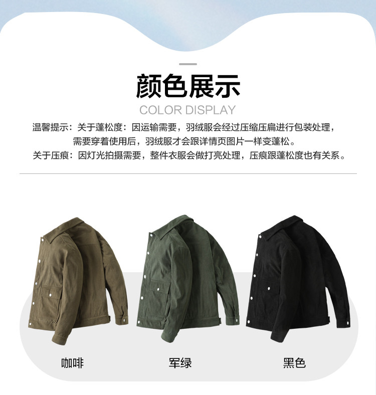 面料:100%聚酯纤维 里料:100%聚酯纤维 胆料:100%聚酯纤维 填充物:鸭绒(绒子含量90%)