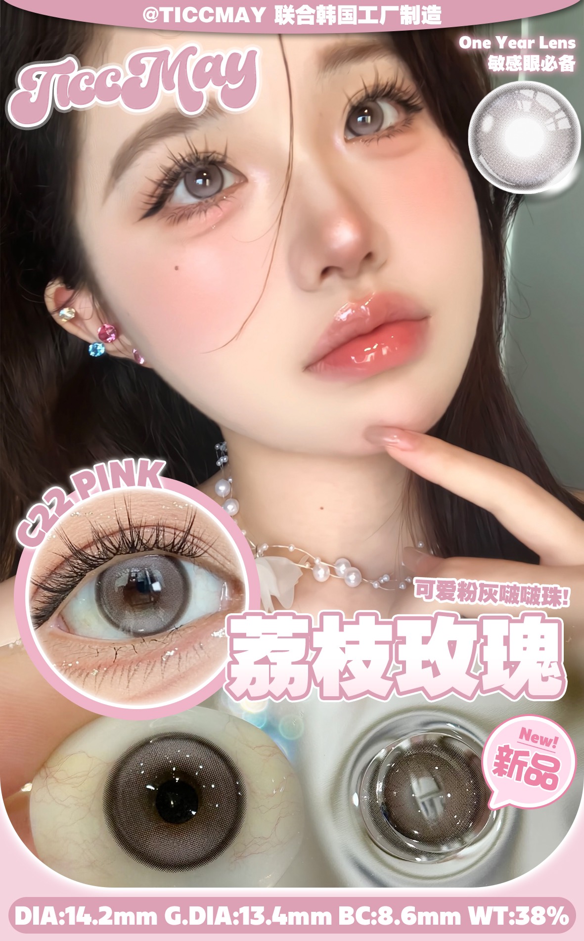 ticcmay 荔枝玫瑰 灰粉/椰子海 蓝 14.2mm 年抛 含硅水凝胶