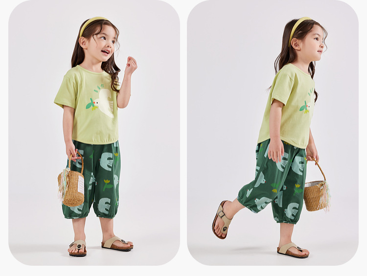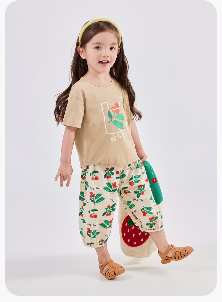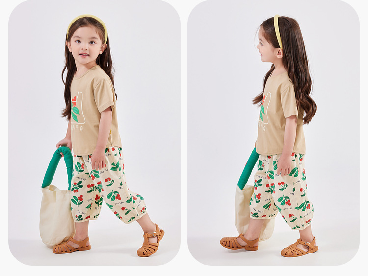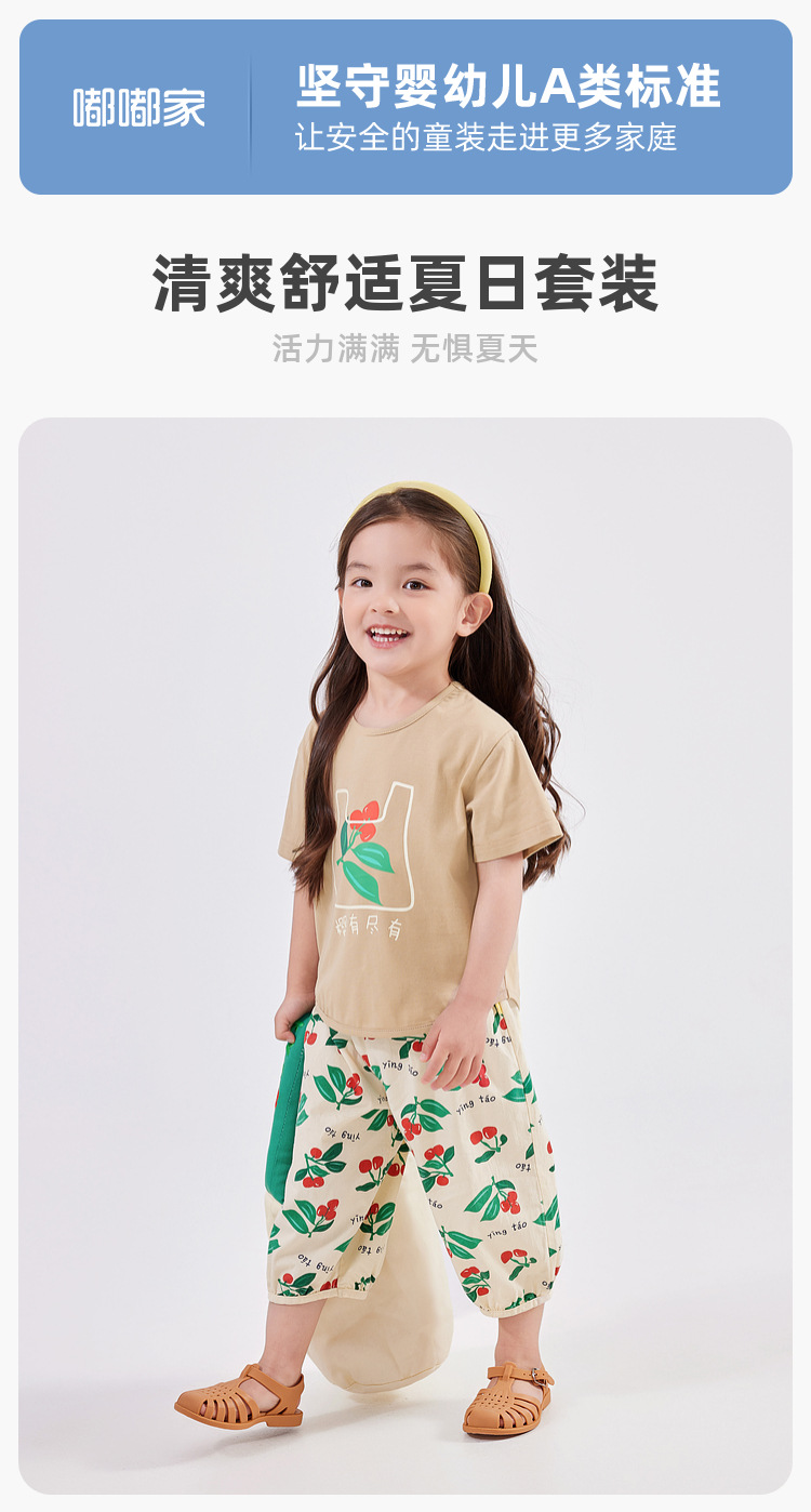 嘟嘟家女童休闲套装夏装新款女孩短袖T恤长裤两件套