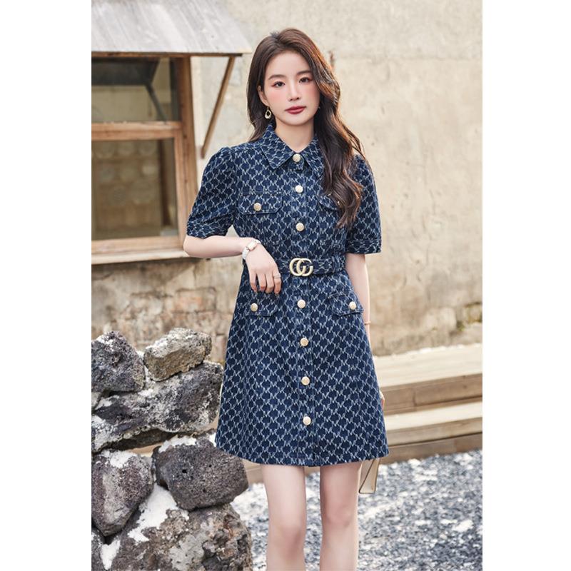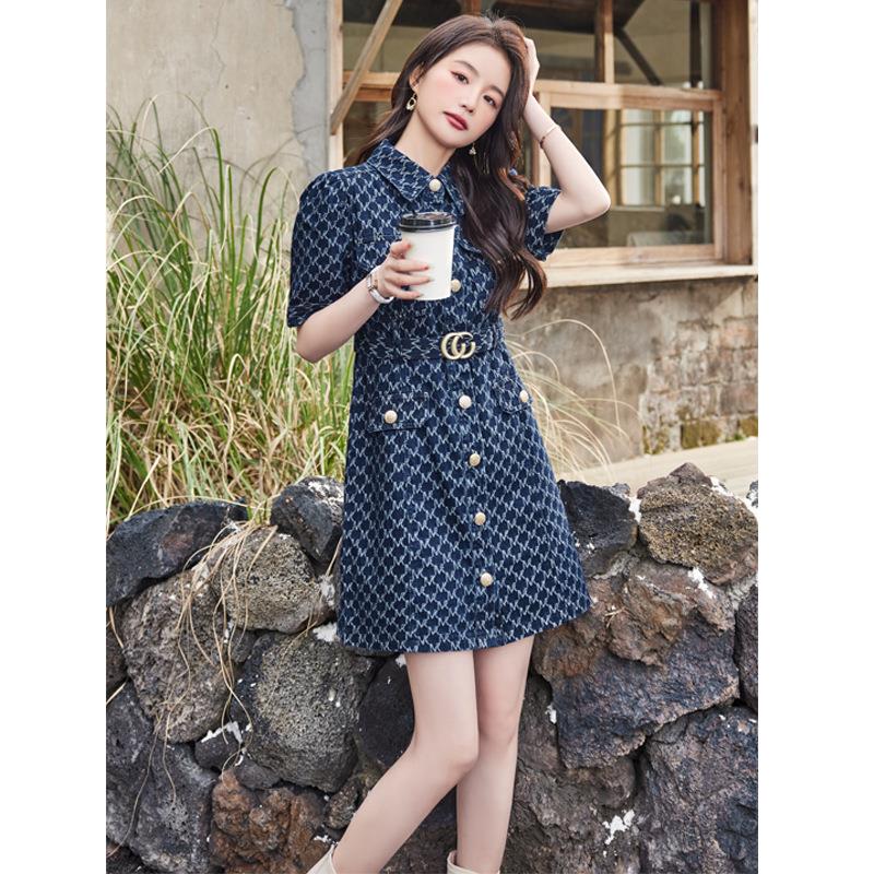 娜璐多 法式牛仔连衣裙女装夏季2023新款收腰显瘦气质裙子高级感A字裙