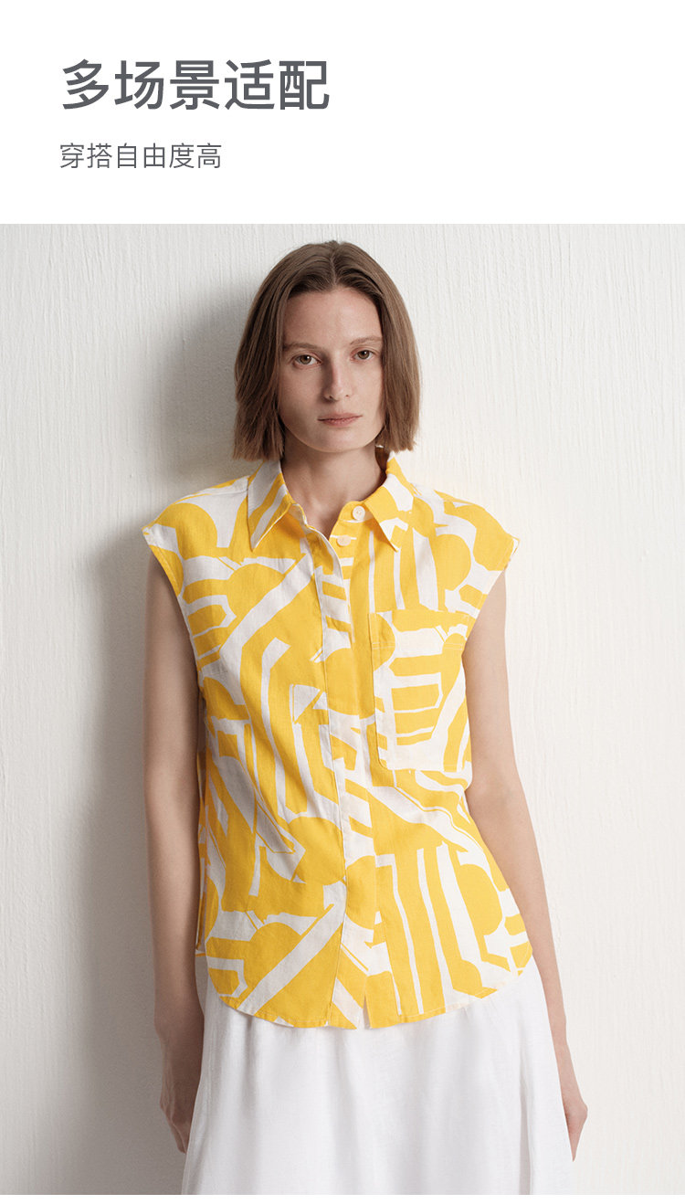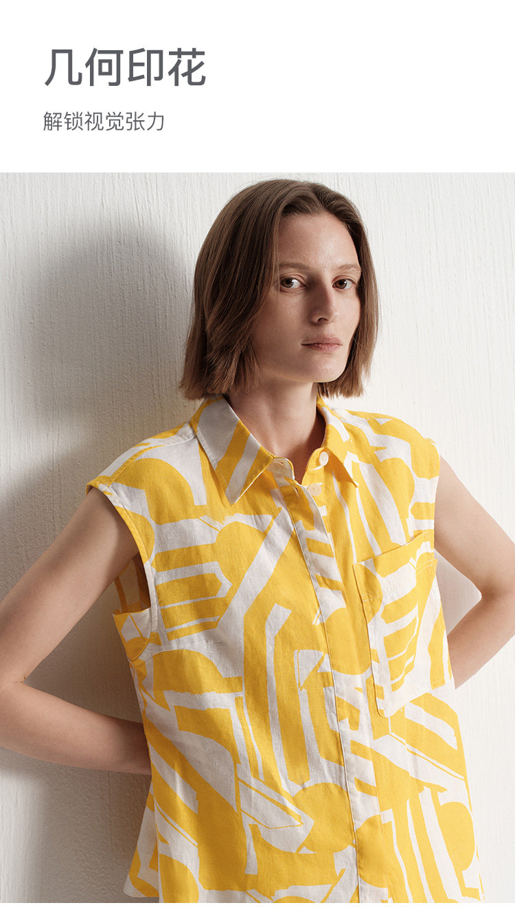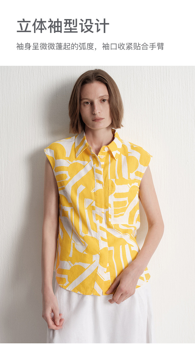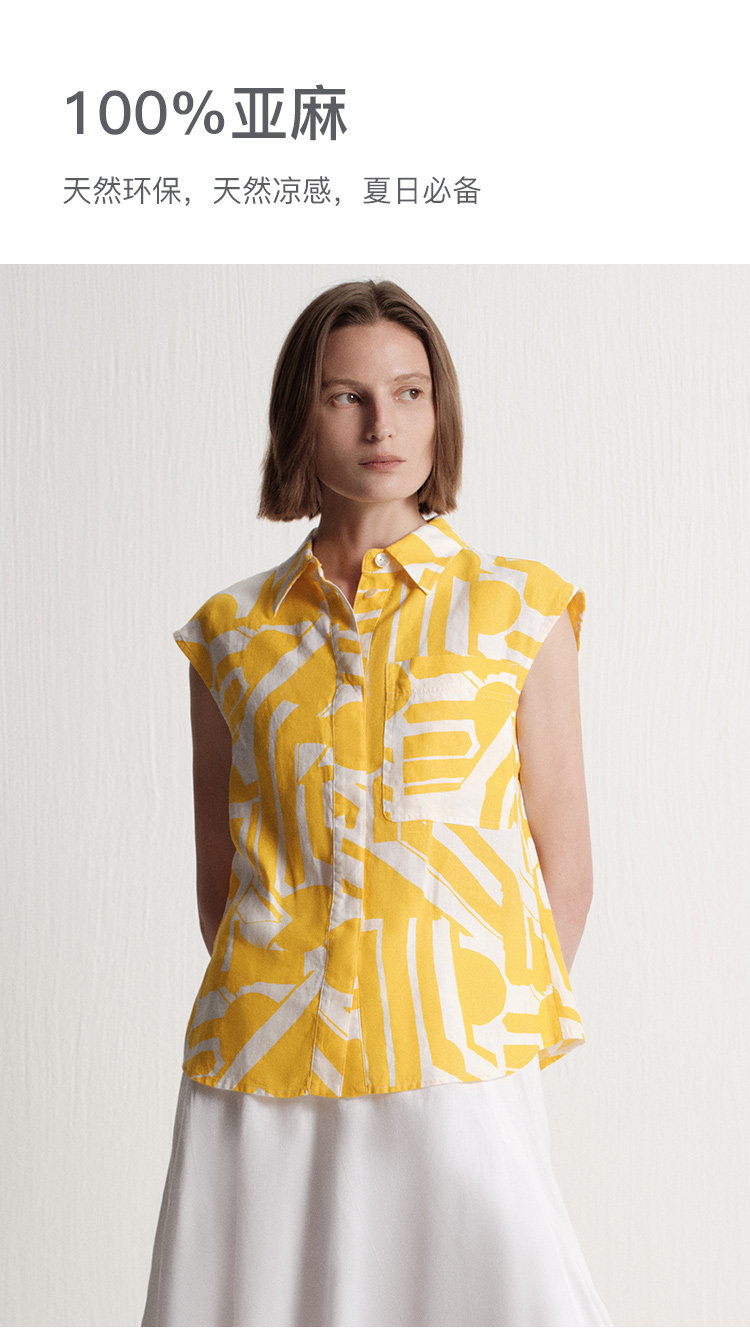 【唯品专供不上架】2025夏季新款度假风时尚印花天然亚麻无袖衬衫