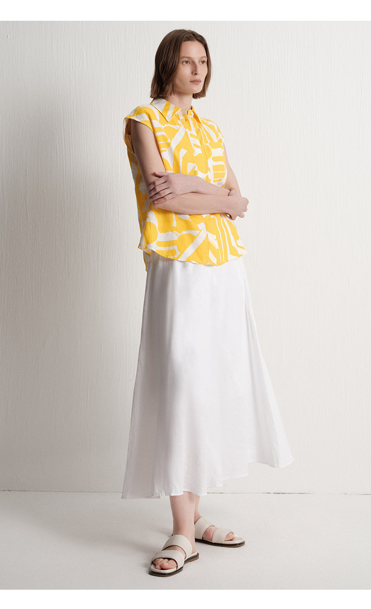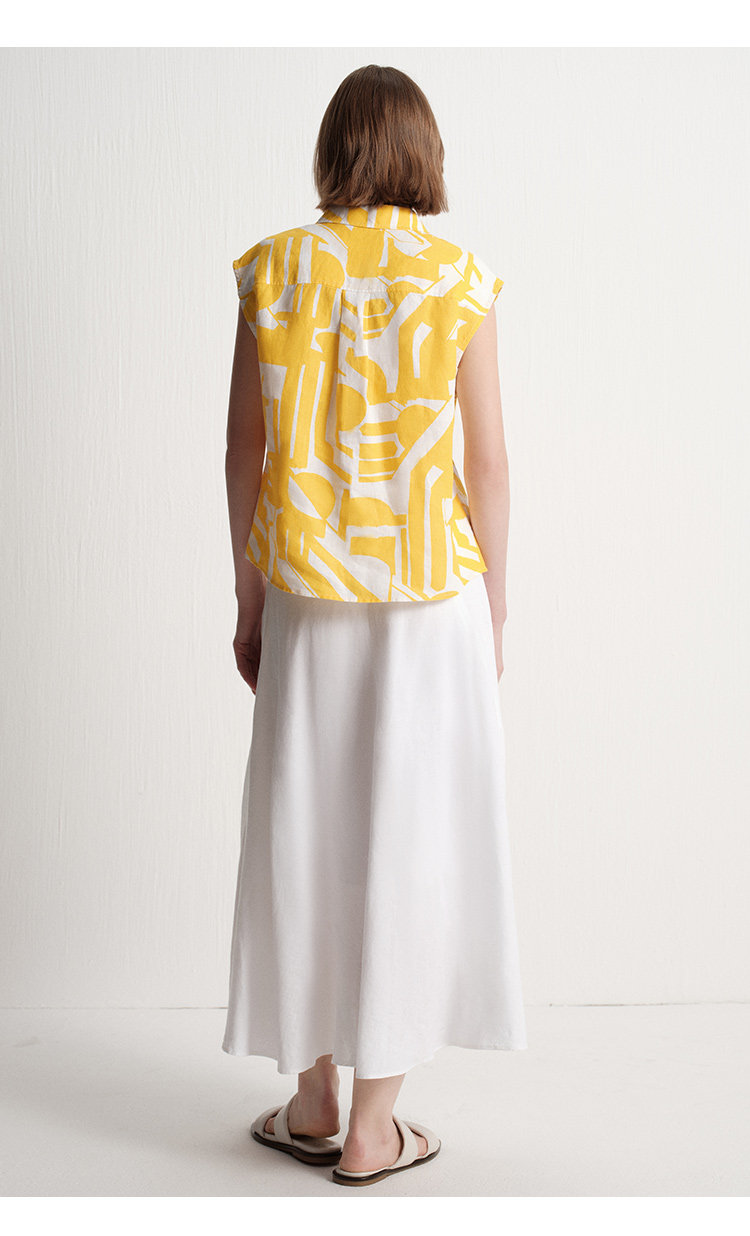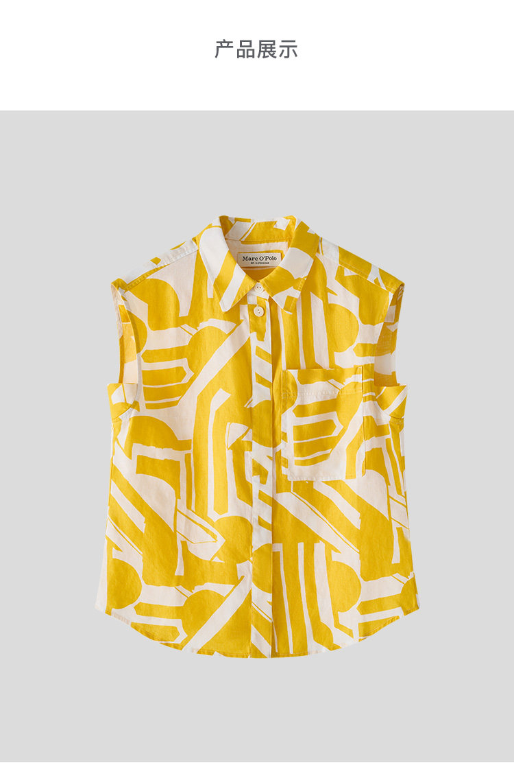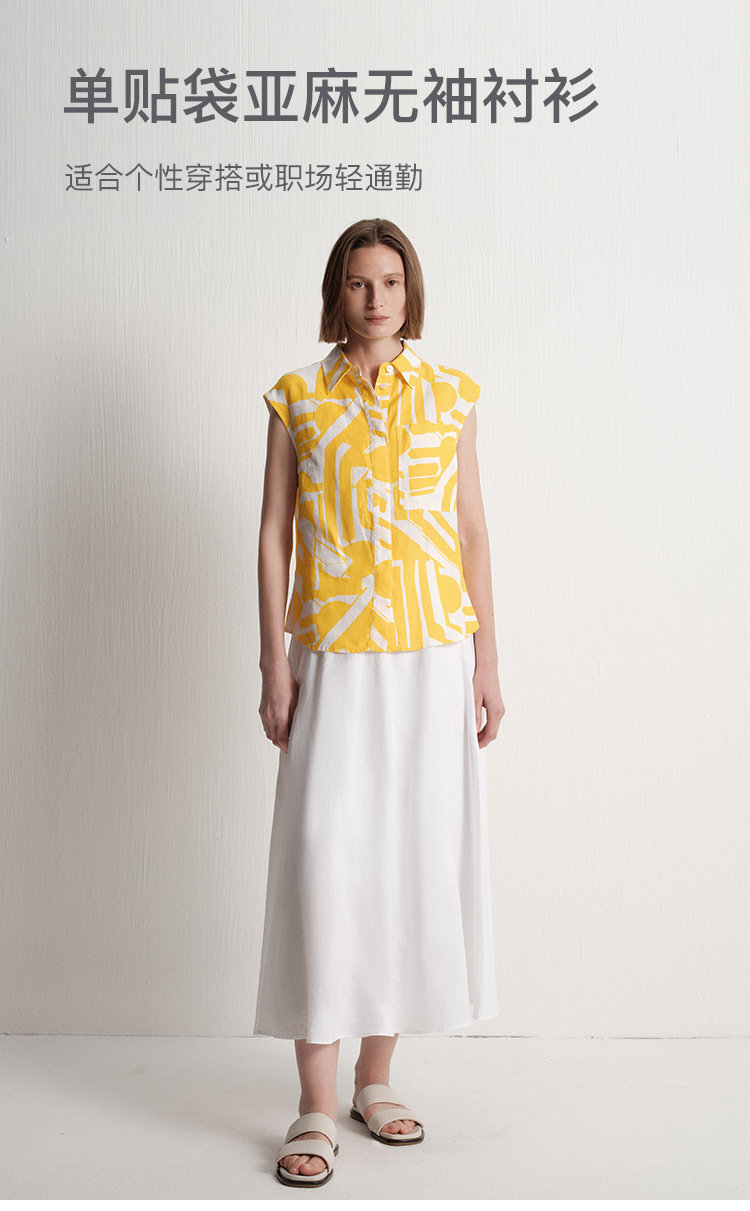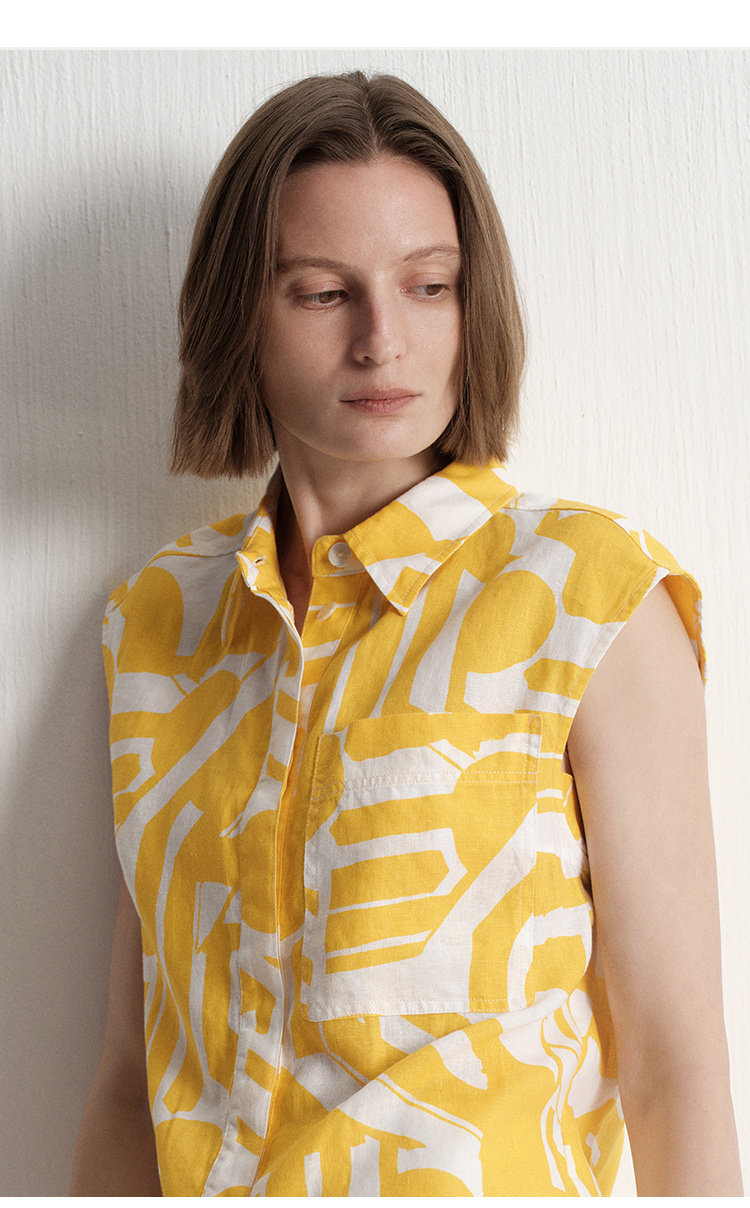 【唯品专供不上架】2025夏季新款度假风时尚印花天然亚麻无袖衬衫