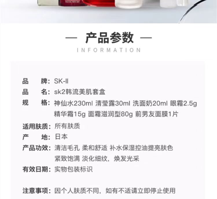 SK-II韩流美肌套装(清莹露30+洁面霜20+神仙水230+精华露80g/15g+眼霜2.5g+面膜1片)