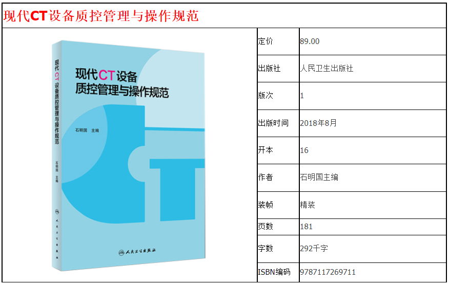 正版 现代CT设备质控管理与操作规范 石明国主编 影像医学人民卫生出版社9787117269711