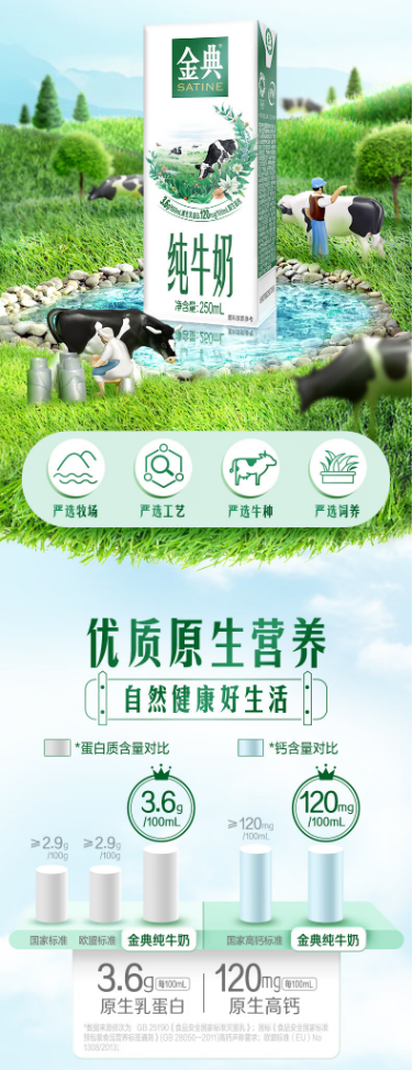 伊利金典纯牛奶250ml*12盒/箱 3.6g乳蛋白 120mg原生高钙 礼盒装