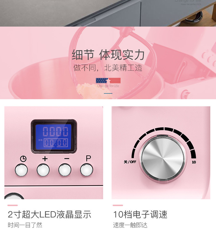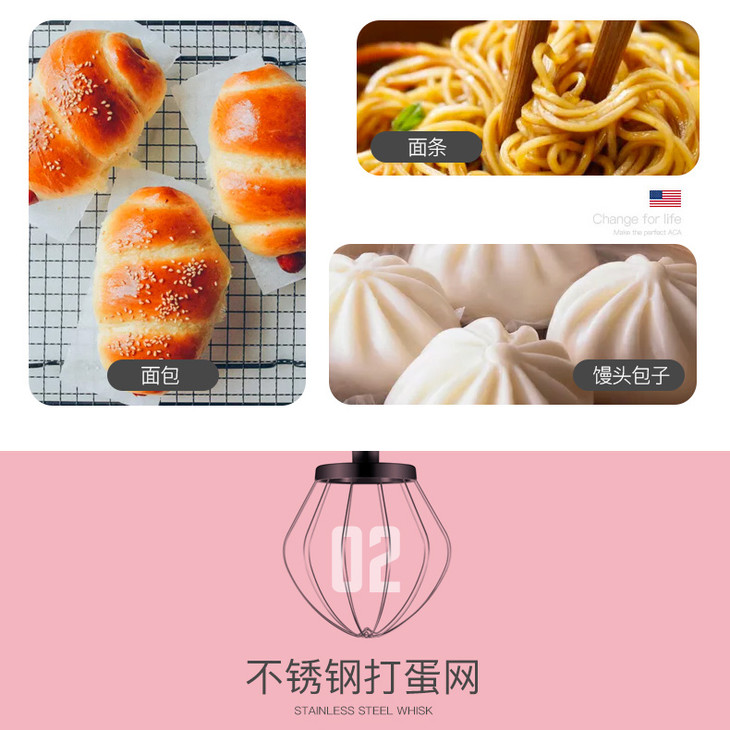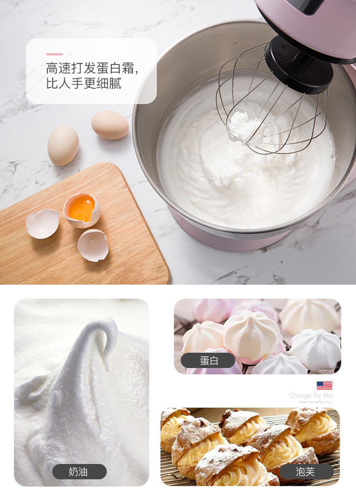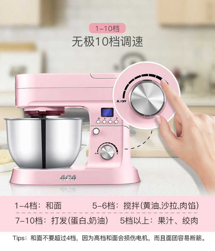 ACA和面机商用厨师机家用小型搅拌揉面机全自动打奶油奶盖鲜奶机