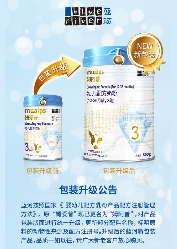 蓝河 姆阿谱(姆爱谱) 奶粉 800克