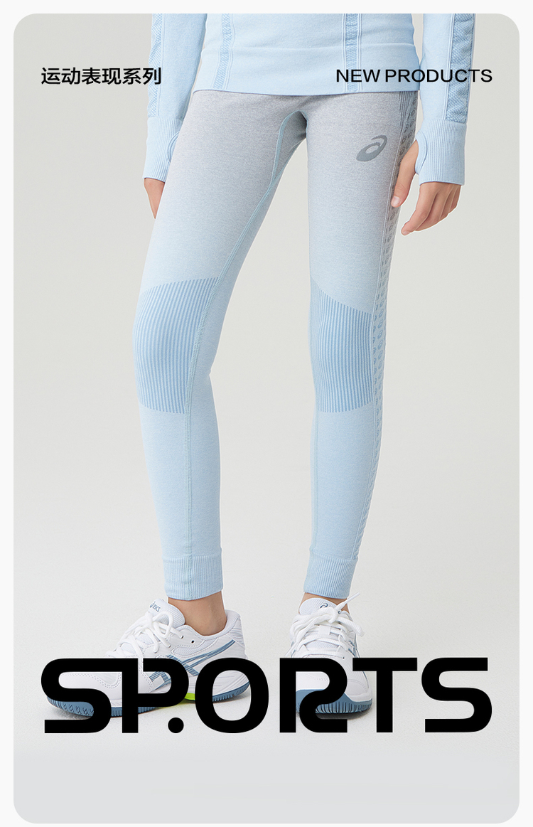 ASICS/亚瑟士2023秋季新品男女童打底裤高弹舒适运动一体织长裤