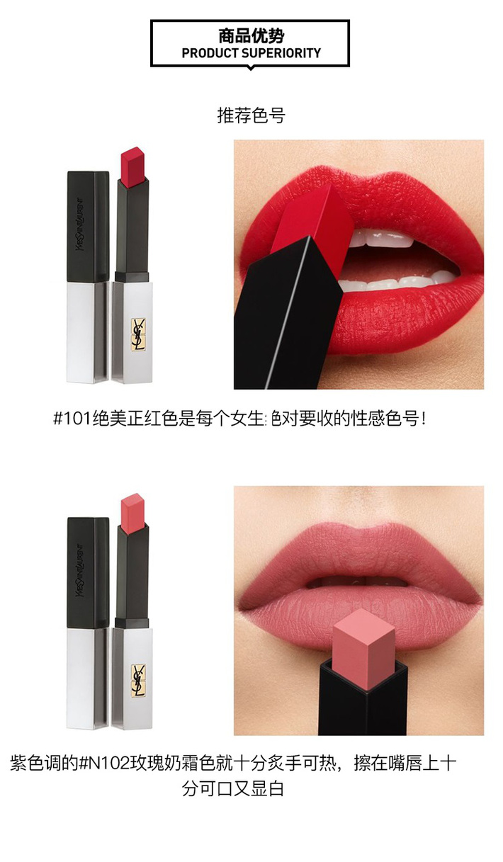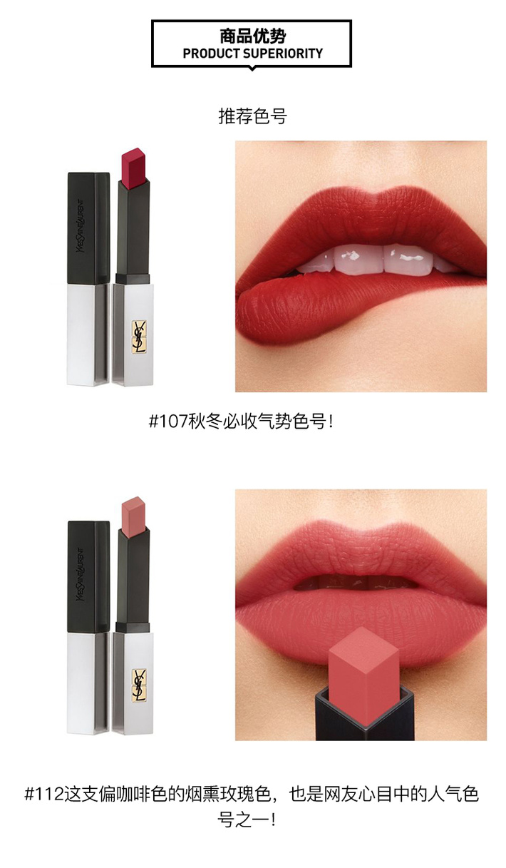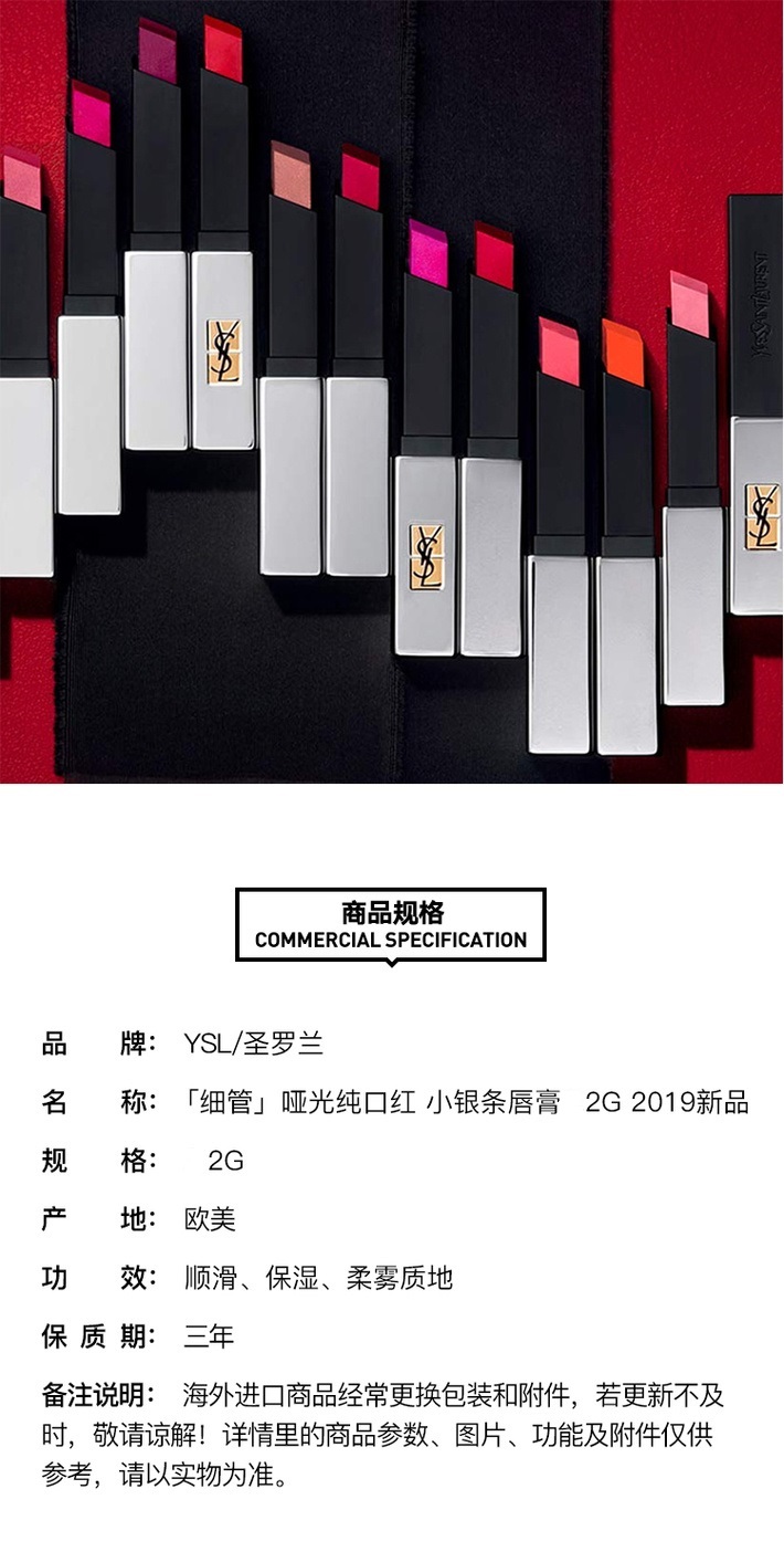· YSL圣罗兰「细管」哑光纯口红 小银条107#唇膏2G