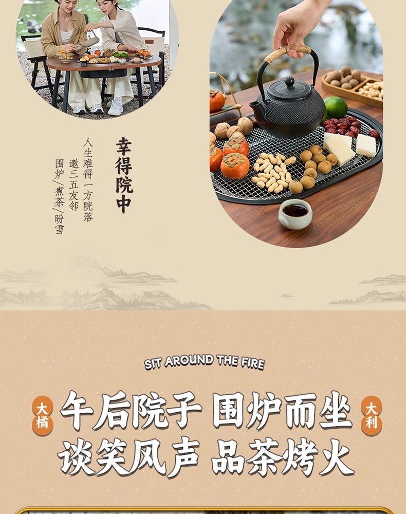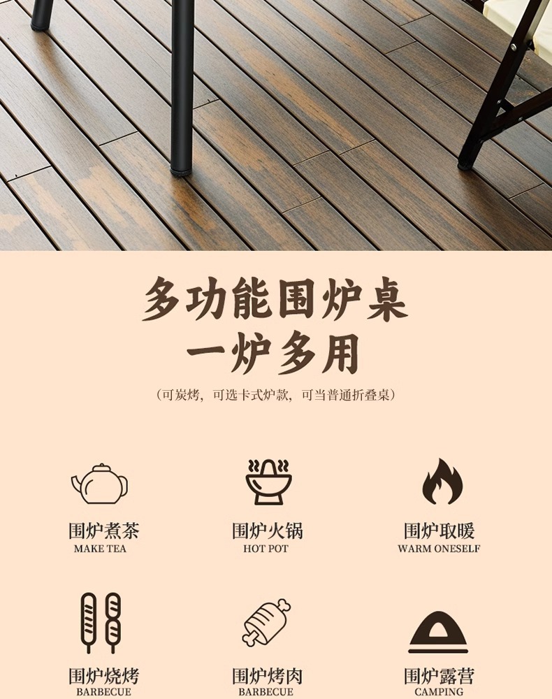 赠手提袋【四腿设计扎实稳固❗️坚固耐用防烫安全】户外露营围炉煮茶桌烤火炉套装烧烤炉 折叠便携家用庭院围聚桌子。jb