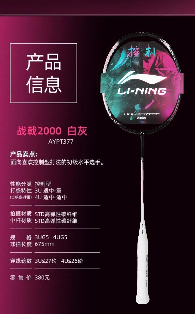 李宁Lining战戟2000控制型专业碳纤维羽毛球拍男女初学攻守兼备