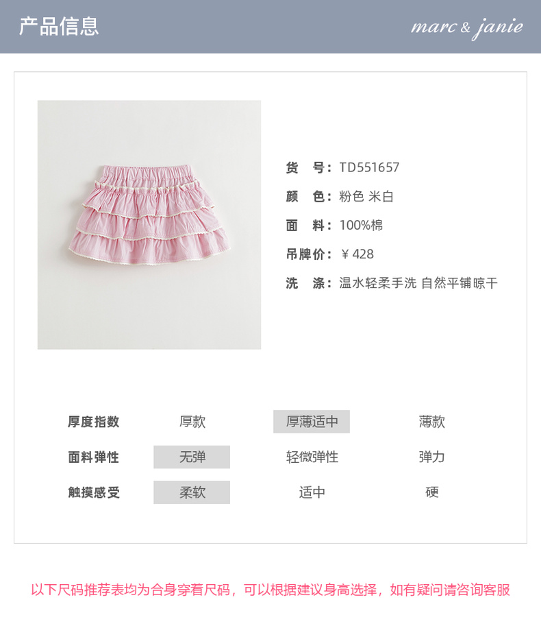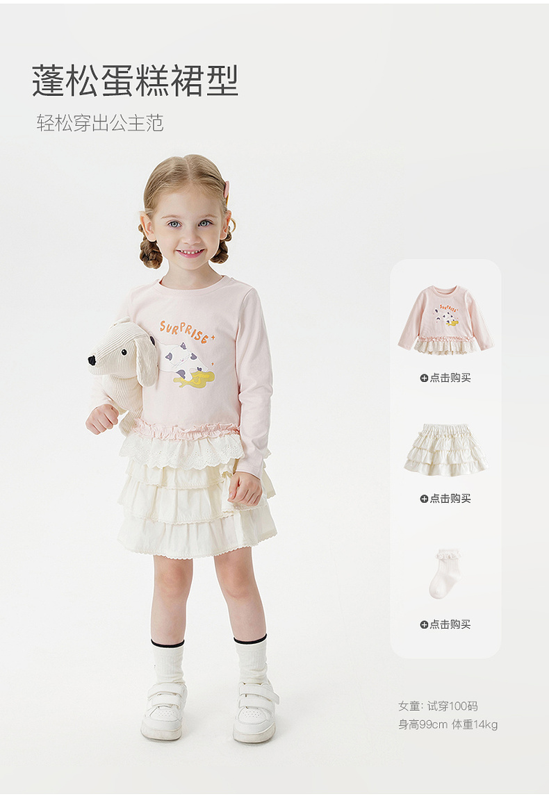 马克珍妮女童甜美花边蛋糕裙 宝宝纯棉短裙2025年秋装新款551657