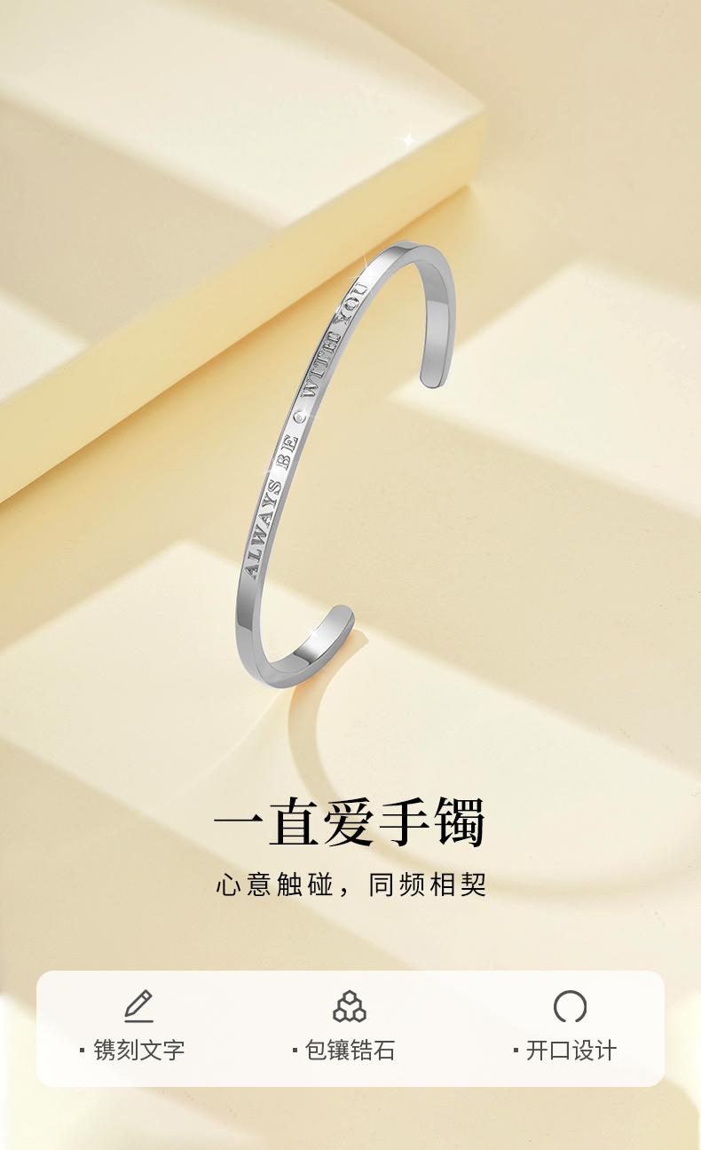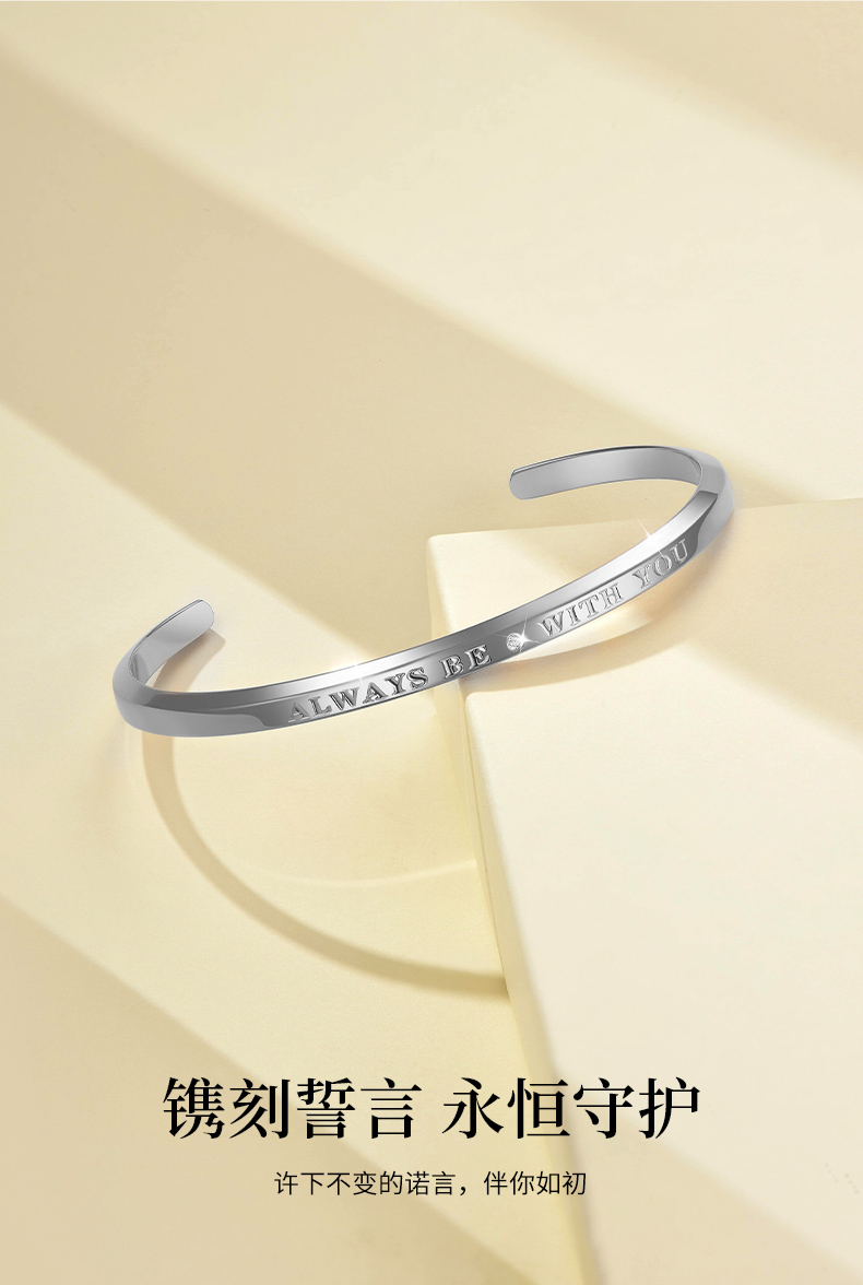【999足银】卡蒂罗/KADER 一直爱 轻奢高级感设计镶钻开口可调节银镯 简约大气个性开口可调节手饰 纯色典雅