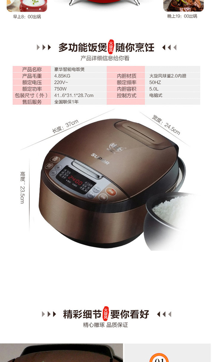 苏泊尔(507720)(SUPOR)电饭煲 CFXB50FC5033A-75家用5升大容量智能球釜电饭锅24小时定时预约球型内胆微电脑式