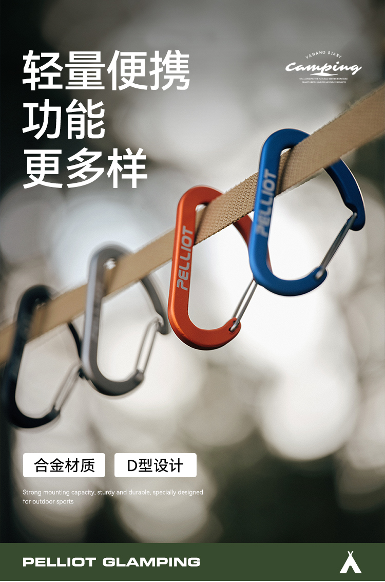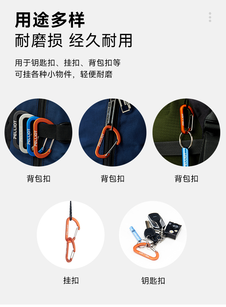 伯希和户外登山扣D型挂钩徒步钥匙扣露营背包快外挂水瓶安全锁扣