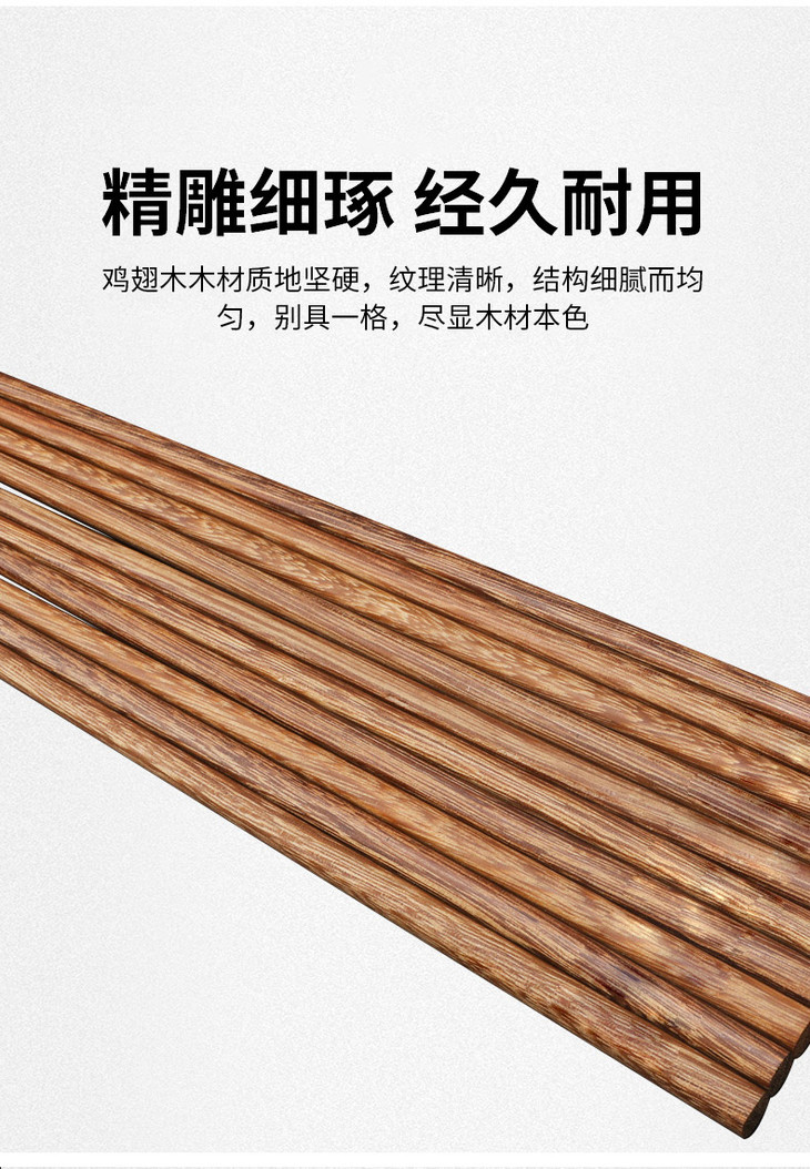 康巴赫鸡翅木筷子家用实木健康无漆蜡长筷10双