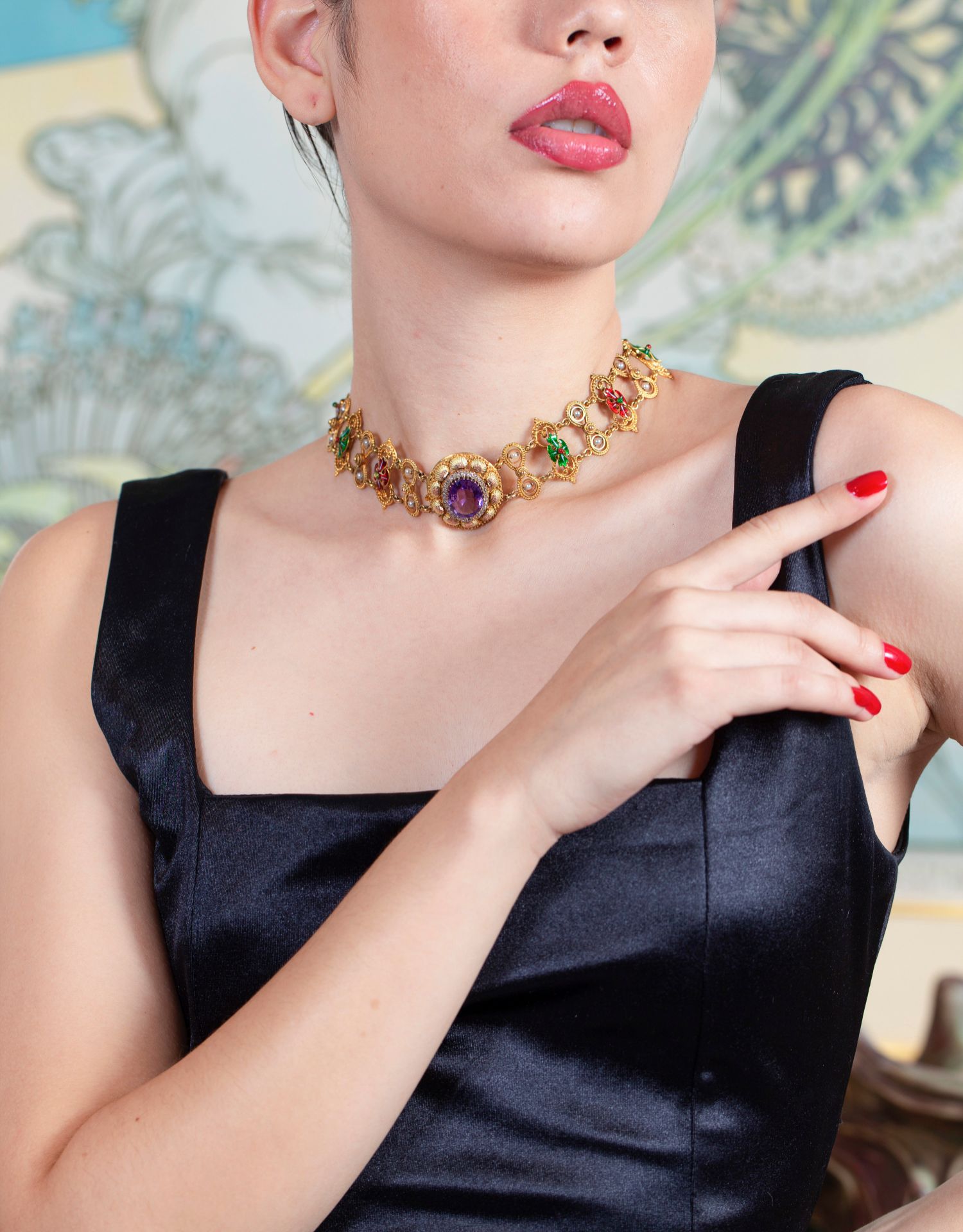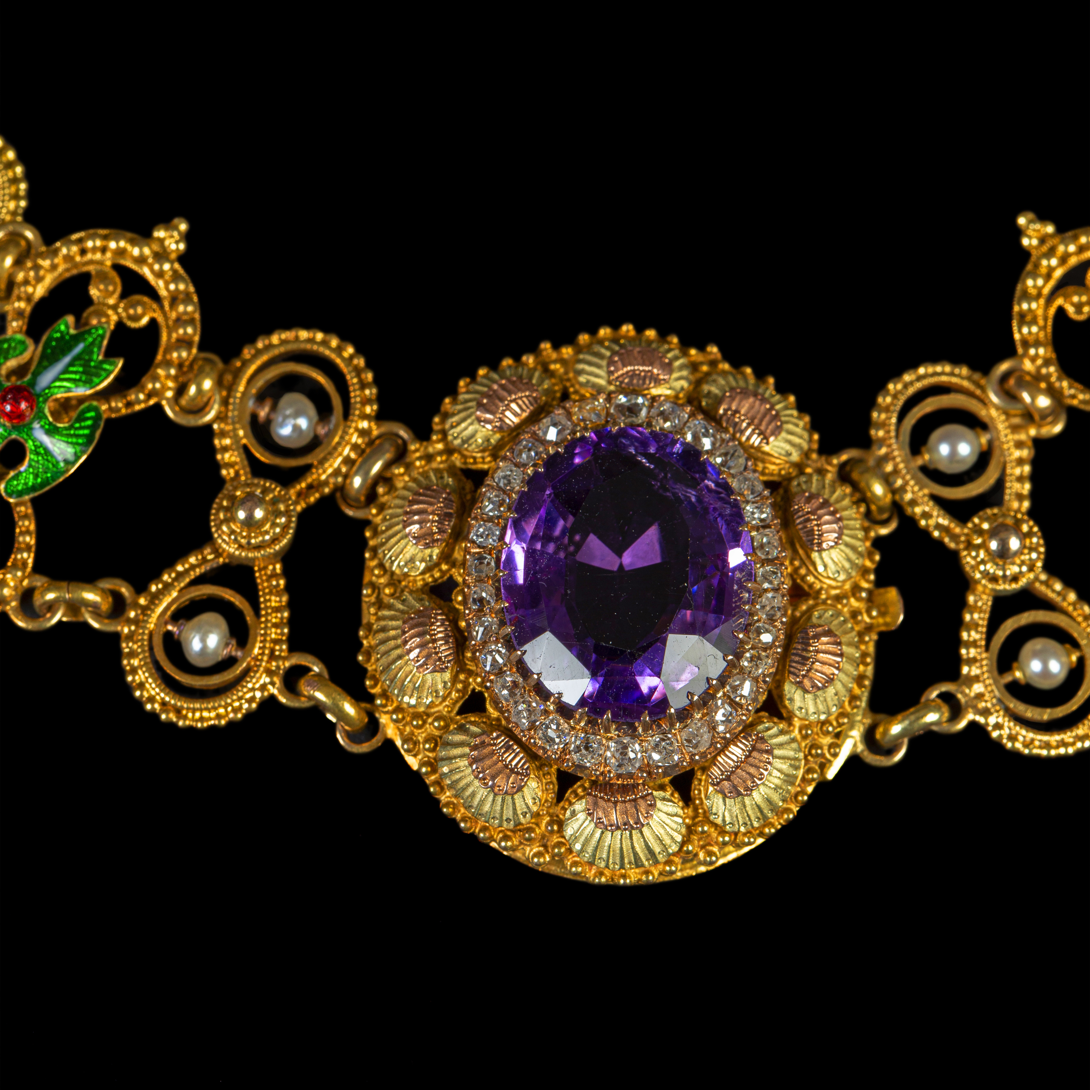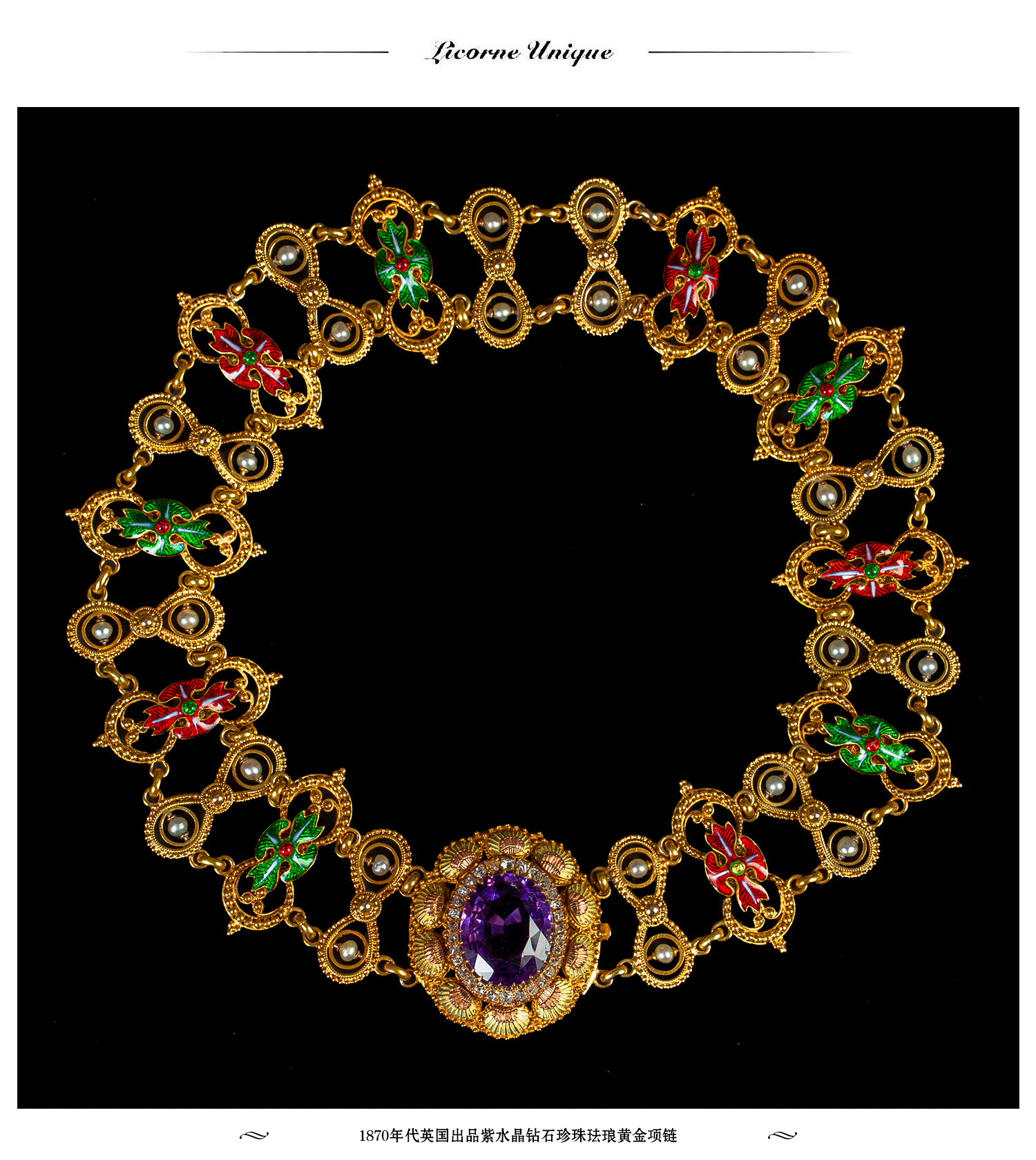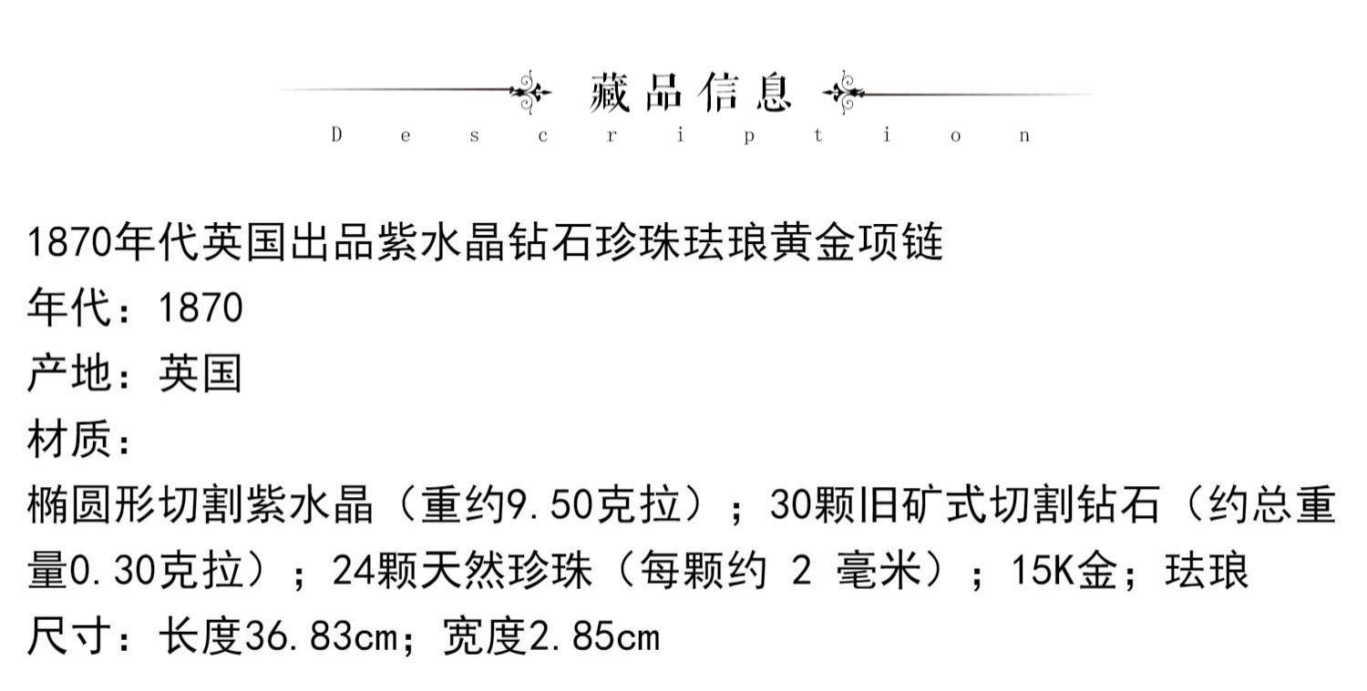 独角鹿西洋古董珠宝首饰1870年代英国紫水晶钻石珍珠珐琅黄金项链