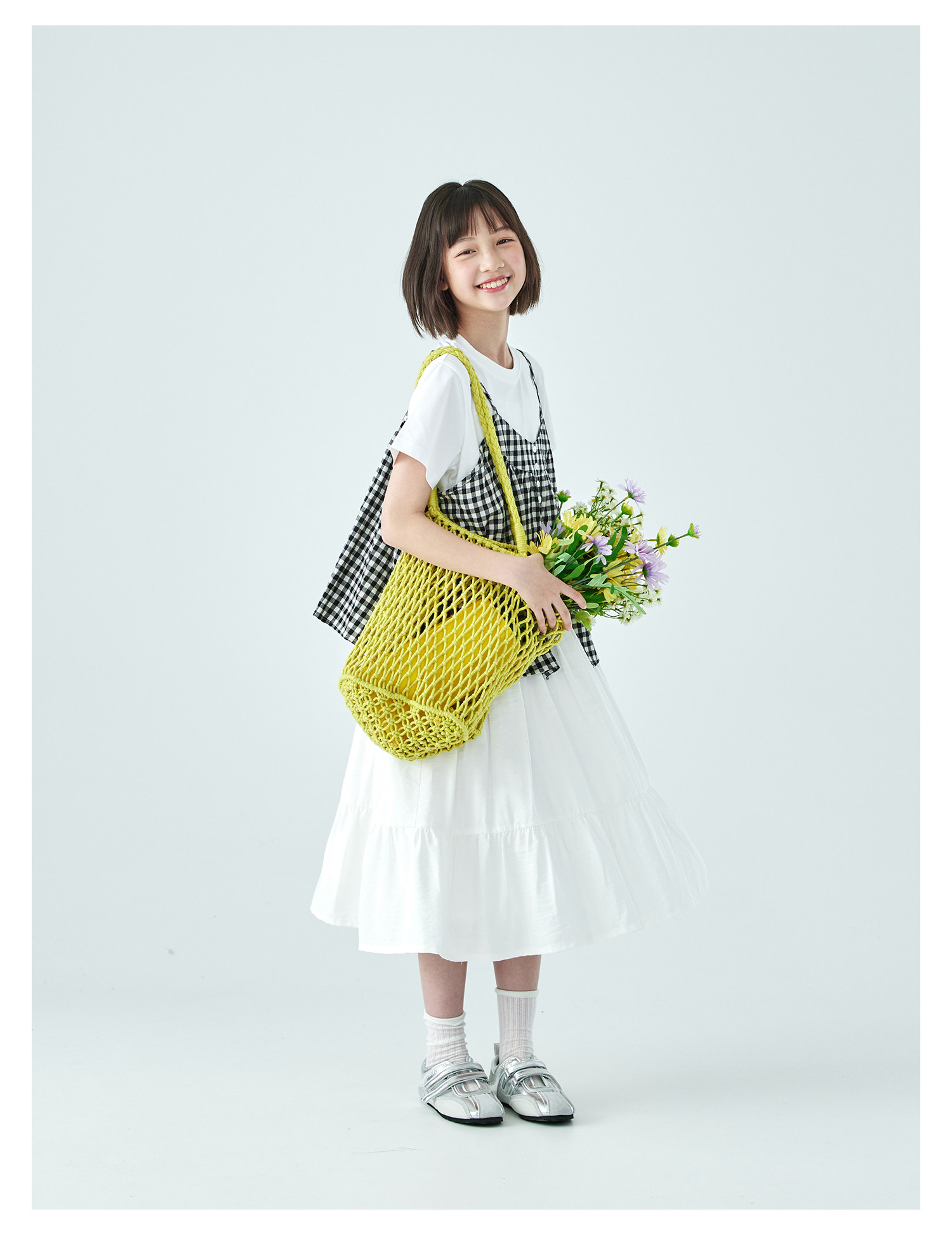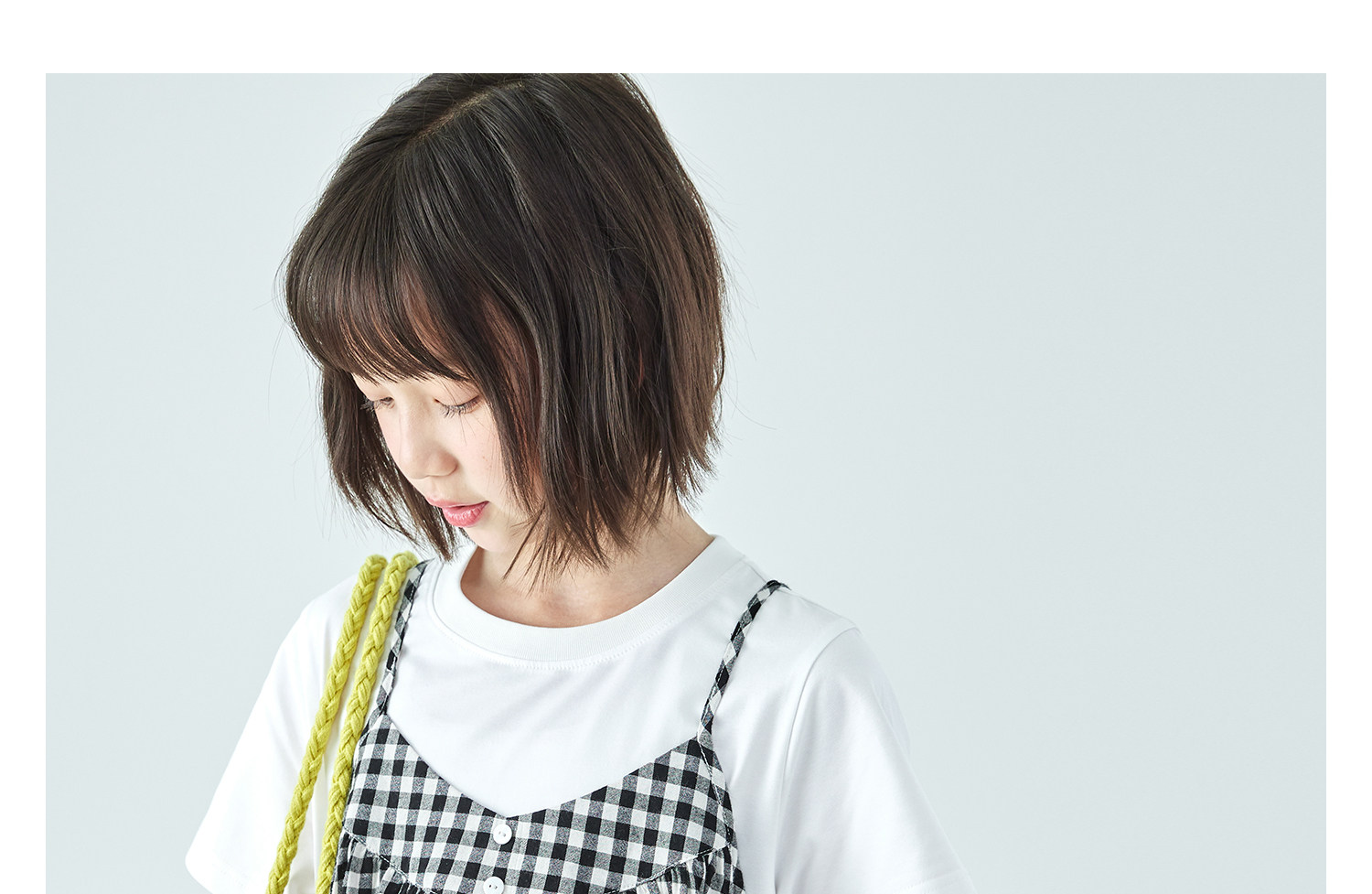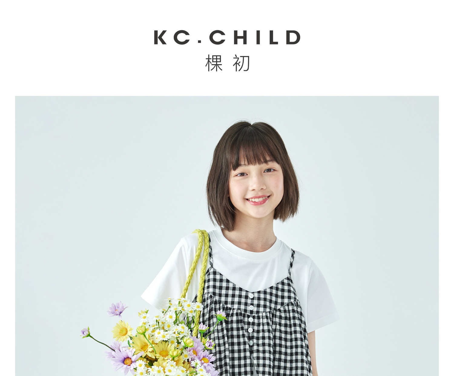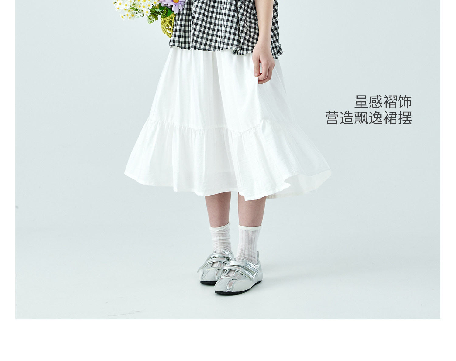 棵初26年夏新款亲子中大女童黑白格纹吊带短袖T恤连衣裙两件套装
