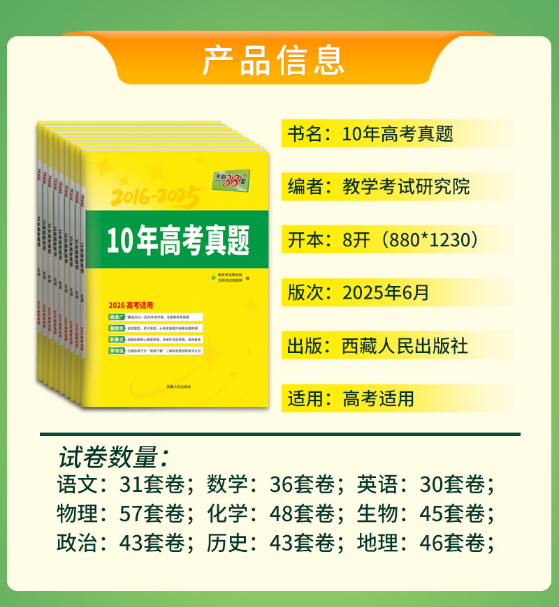 天利38套 2026 10年高考真题 语文 数学 英语 物理 化学 生物 政治 历史 地理