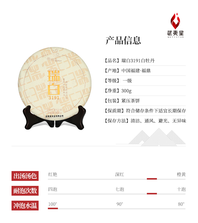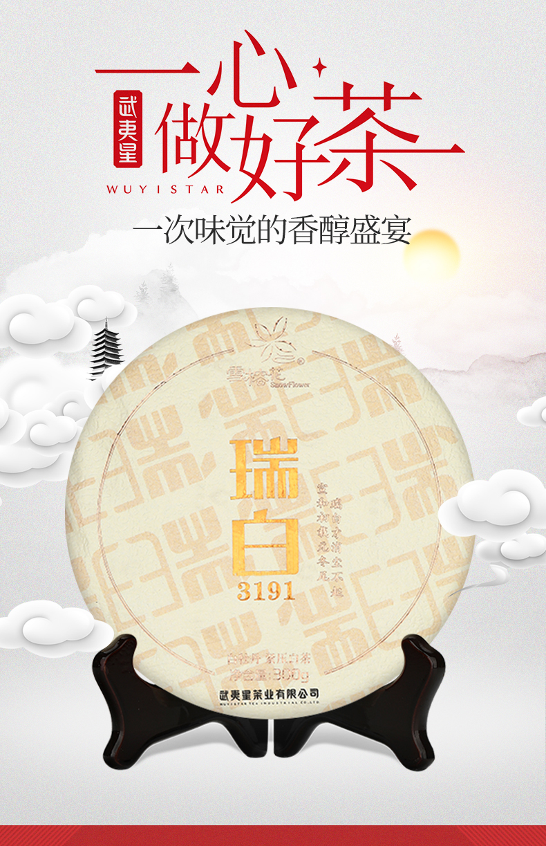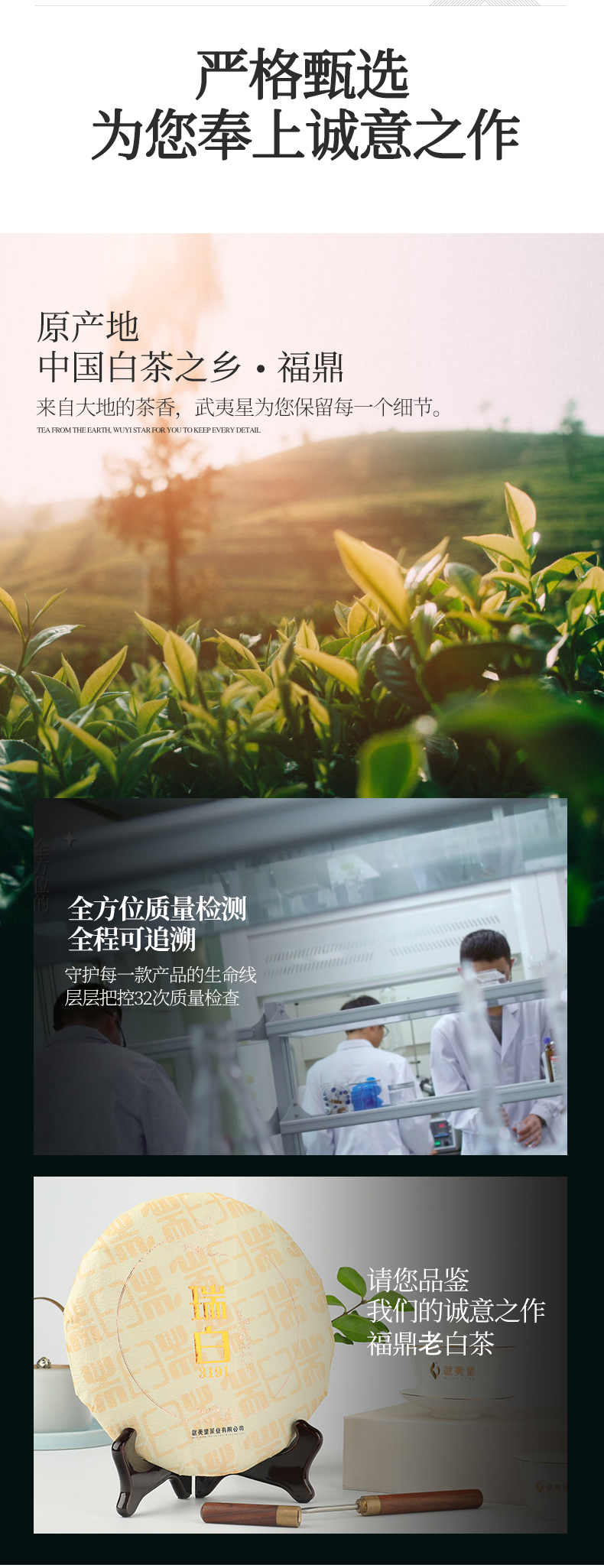 武夷星瑞白3191白牡丹白茶饼装老白茶福建福鼎白茶茶饼300g