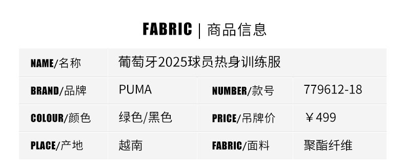 SFS正品 PUMA彪马2025年葡萄牙球员赛前训练服779612-18
