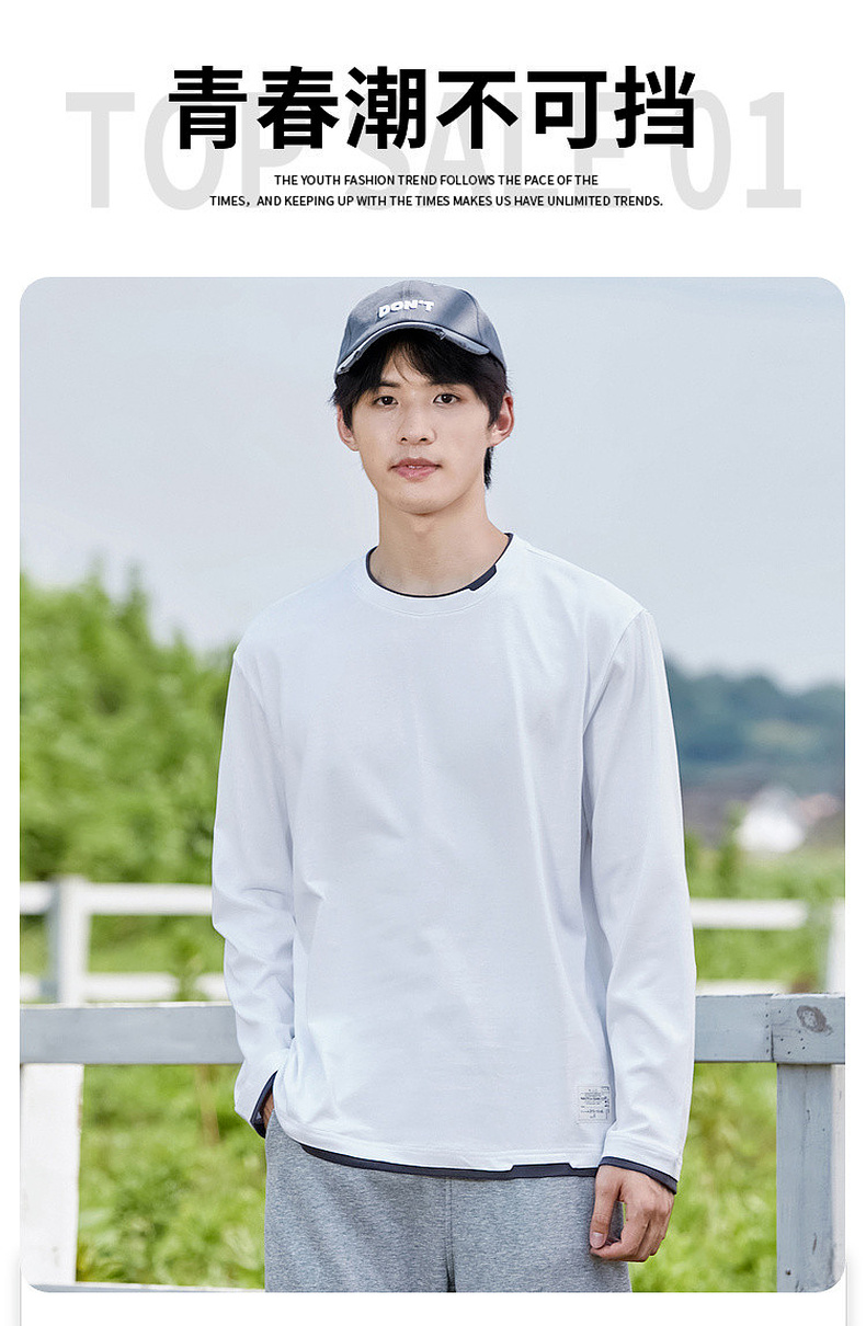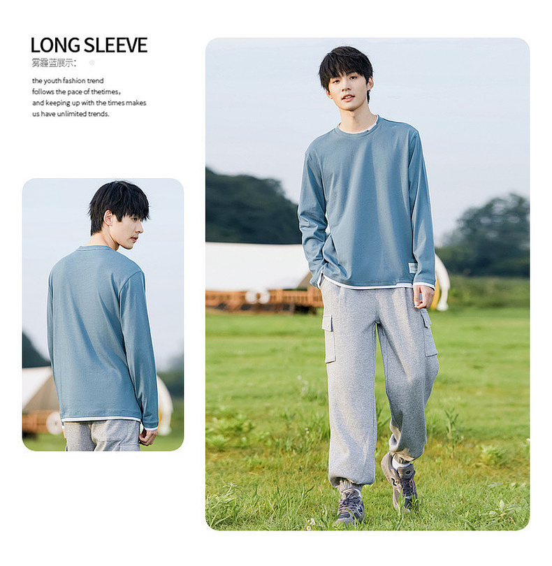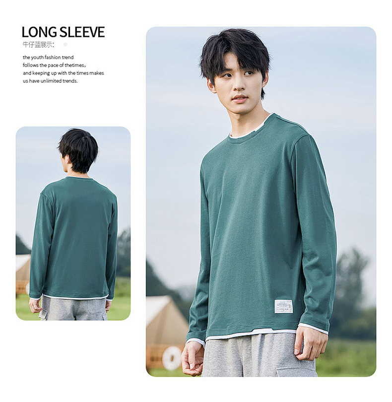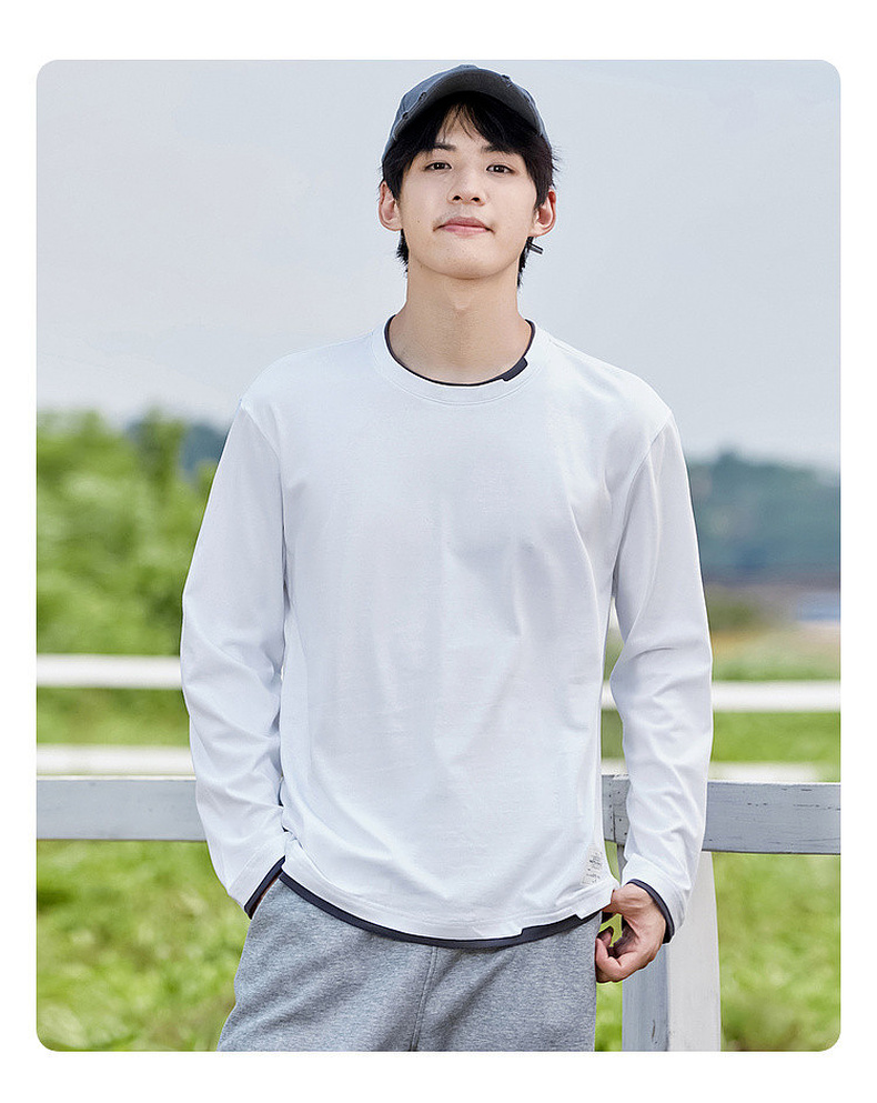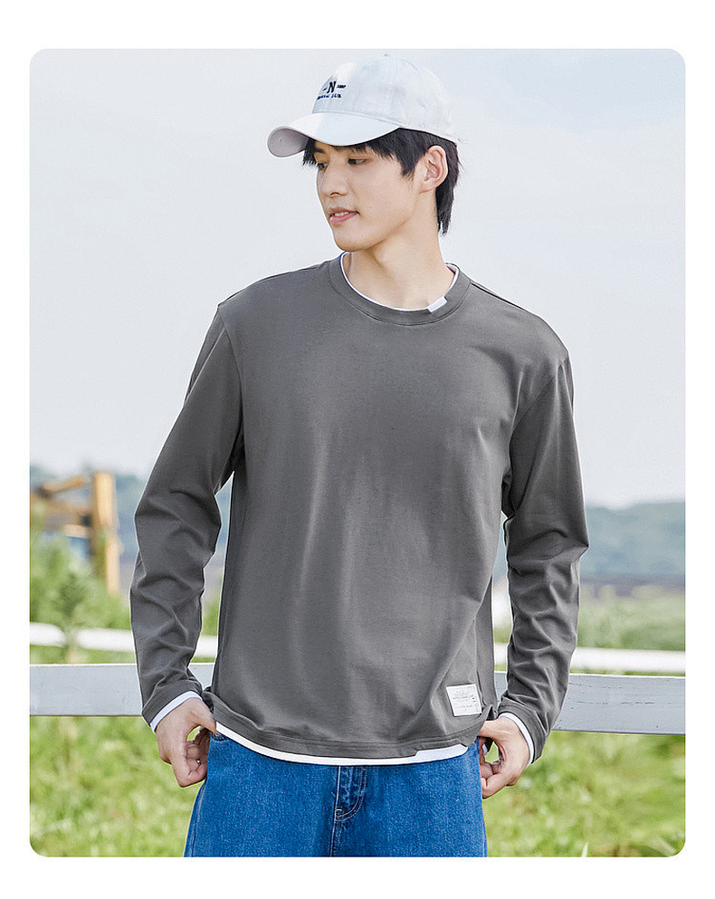 GXG男装【100%棉】秋季简约百搭舒适休闲打底衫男式圆领长袖t恤K&C