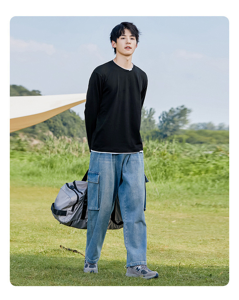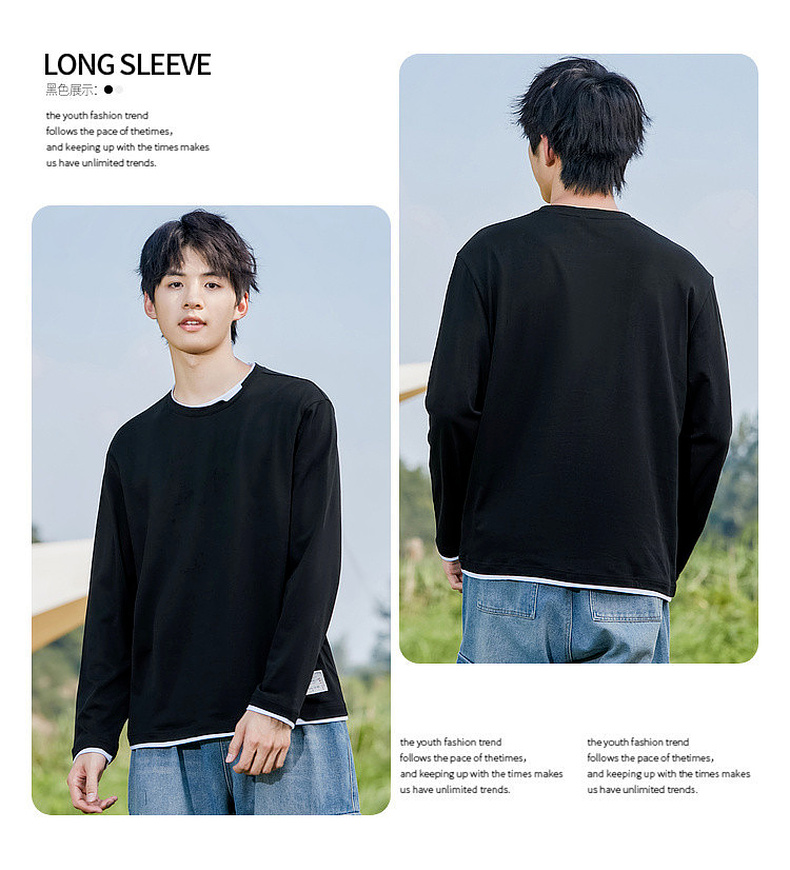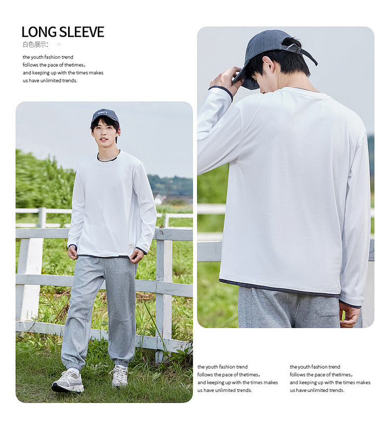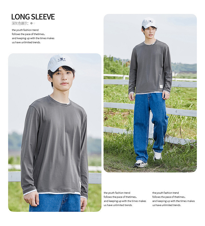 GXG男装【100%棉】秋季简约百搭舒适休闲打底衫男式圆领长袖t恤K&C