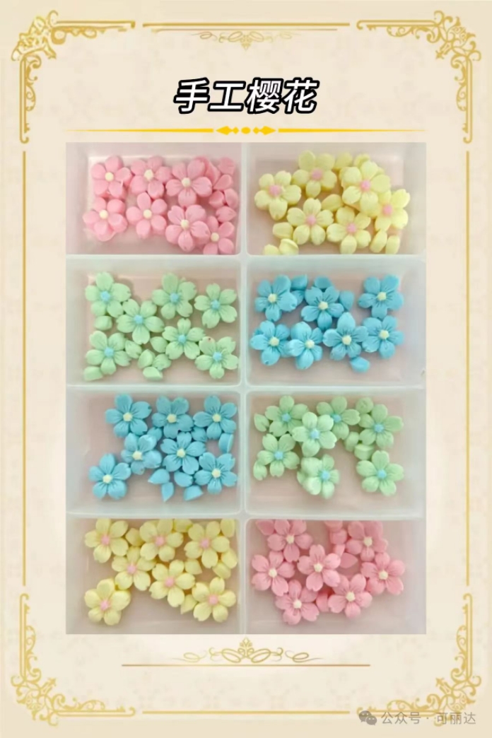 巧克力插件配件 【手工樱花】 约56朵/盒 四色樱花+花瓣 代可可脂巧克力装饰