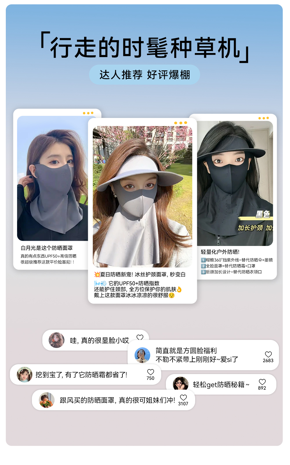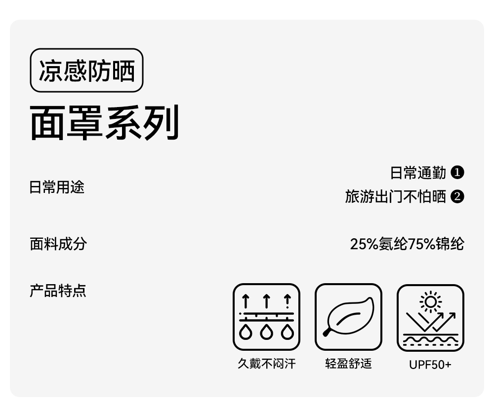 另外,我们还给大家上线了一款“脸基尼”,采用隐藏式呼吸孔面料,全脸防晒,价格只需要15元。