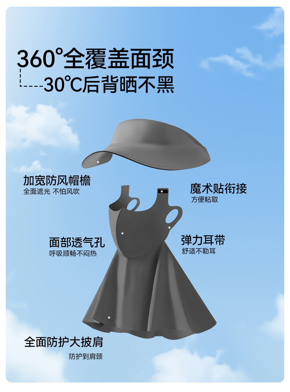 工厂直销 | 夏日防晒产品 全脸面罩/可拆卸帽檐大面罩/可拆卸帽檐口罩/防晒衣