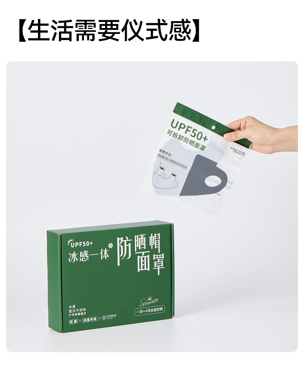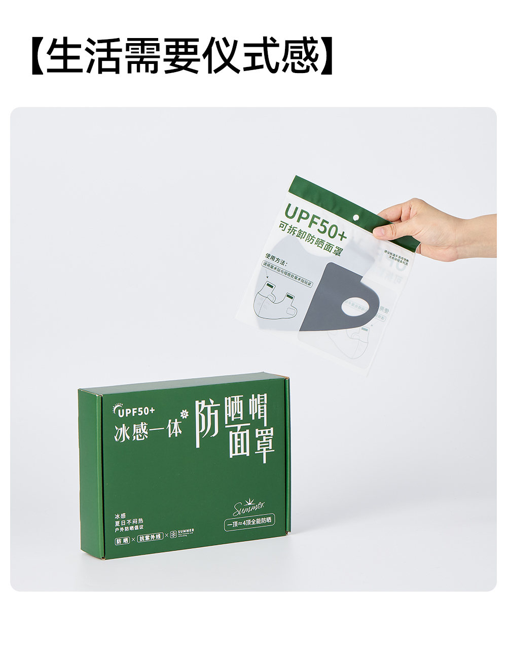 另外还有两款可拆卸帽檐防晒面罩组合,可以选择面颈一体的防晒面罩或普通防晒口罩,无痕工艺、三重立体设计,戴起来不易闷汗。彩盒包装,价格均为35元一组。