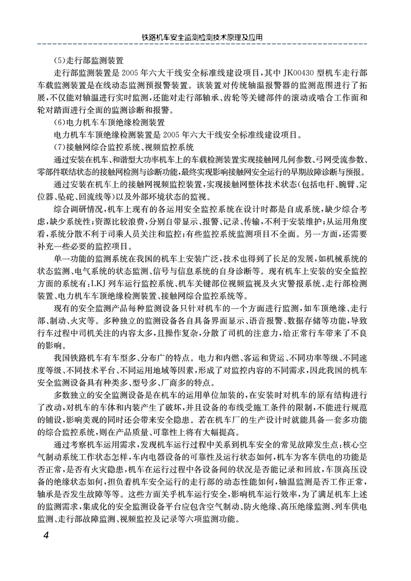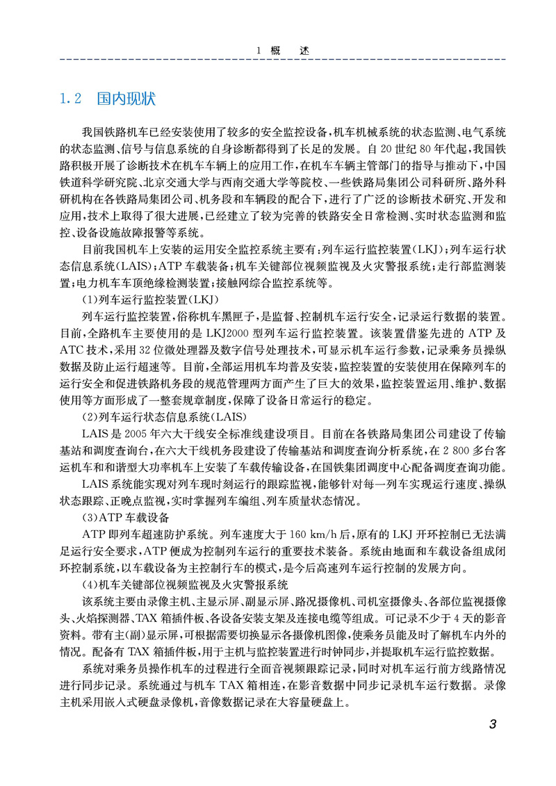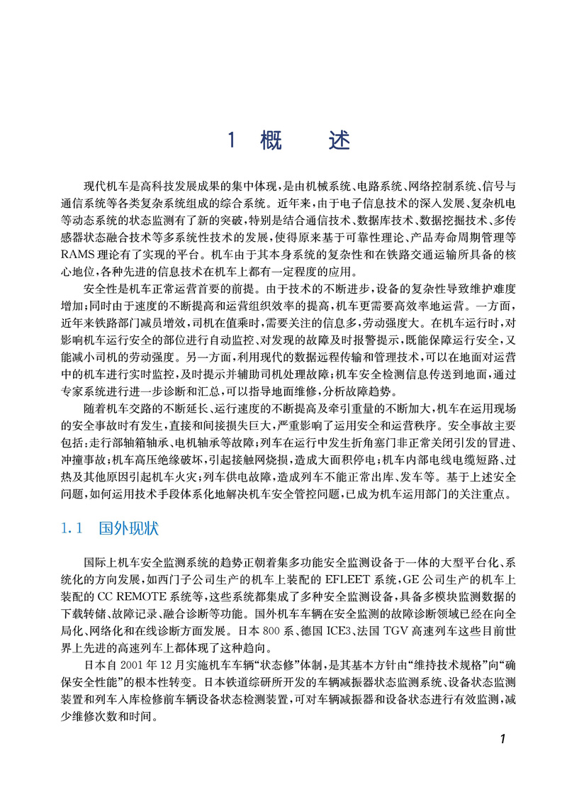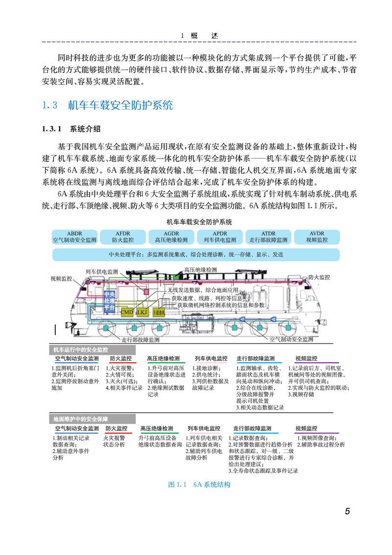 本书结合我国铁路和谐型大功率机车运用安全监测检测的现状,详细介绍了适合于和谐型大功率机车的车载安全监测统一平台-机车车载安全防护系统(以下简称6A系统),该系统对既有的运用安全监控系统进行融合,同时利用综合平台的优势,利用智能传感技术、通信技术和信息融合技术,对机车的制动、防火、高压绝缘、列车供电、走行部和视频信息等进行动态监测与监控,数据集中,信息共享,综合分析,提前预警。该平台首创国内安全监测平台的集成,并在国内电力机车、内燃机车、调车机等车型实现工程化应用。《铁路机车安全监测检测技术原理及应用》分别对机车安全监测检测现状,机车安全监测检测平台,制动系统、火灾监测系统、电气设备、机车走行部、机车视频监控等系统的安全监测检测技术,以及安全监测检测数据分析技术、数据应用等方面进行了详细介绍。本书按照机车车载安全防护系统(6A系统)监测检测设备的原理和构成,系统功能,以及机车安全监测检测相关的数据分析技术及其应用等编排顺序,各部分之间既保持相对独立,又存在内在的统一联系。