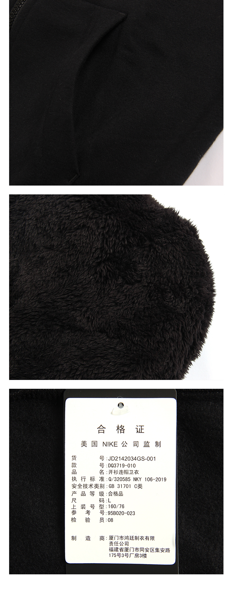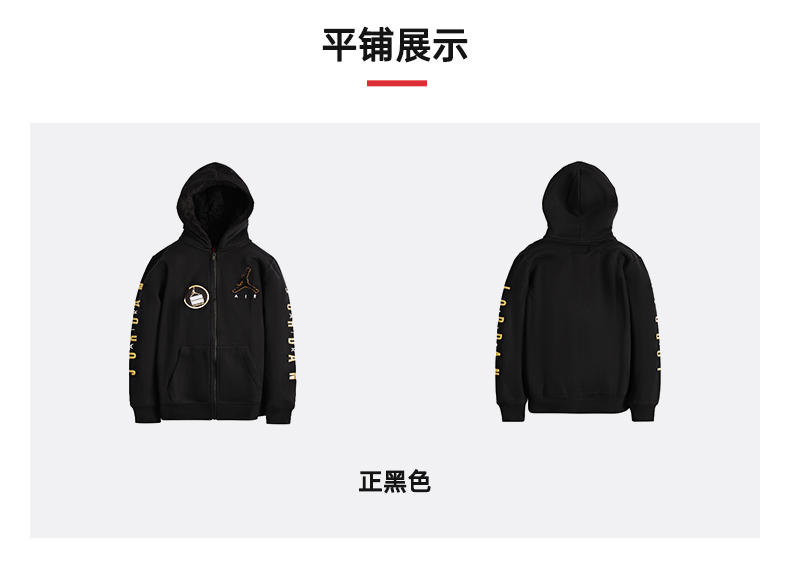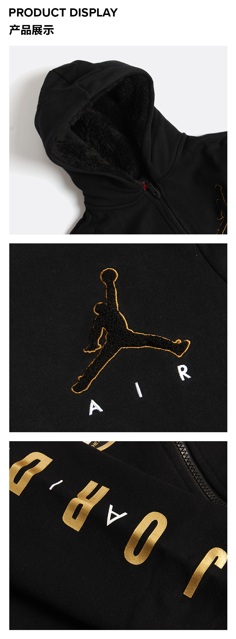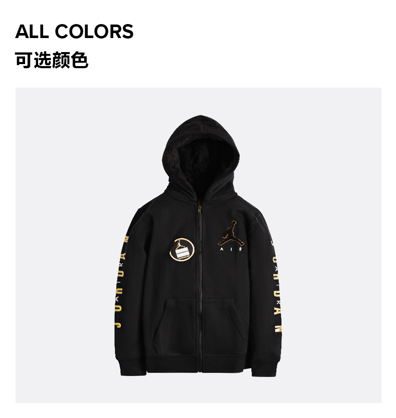 AIR JORDANAJ乔丹冬AJ男童拉锁开衫外套加绒帽衫卫衣JD2142034