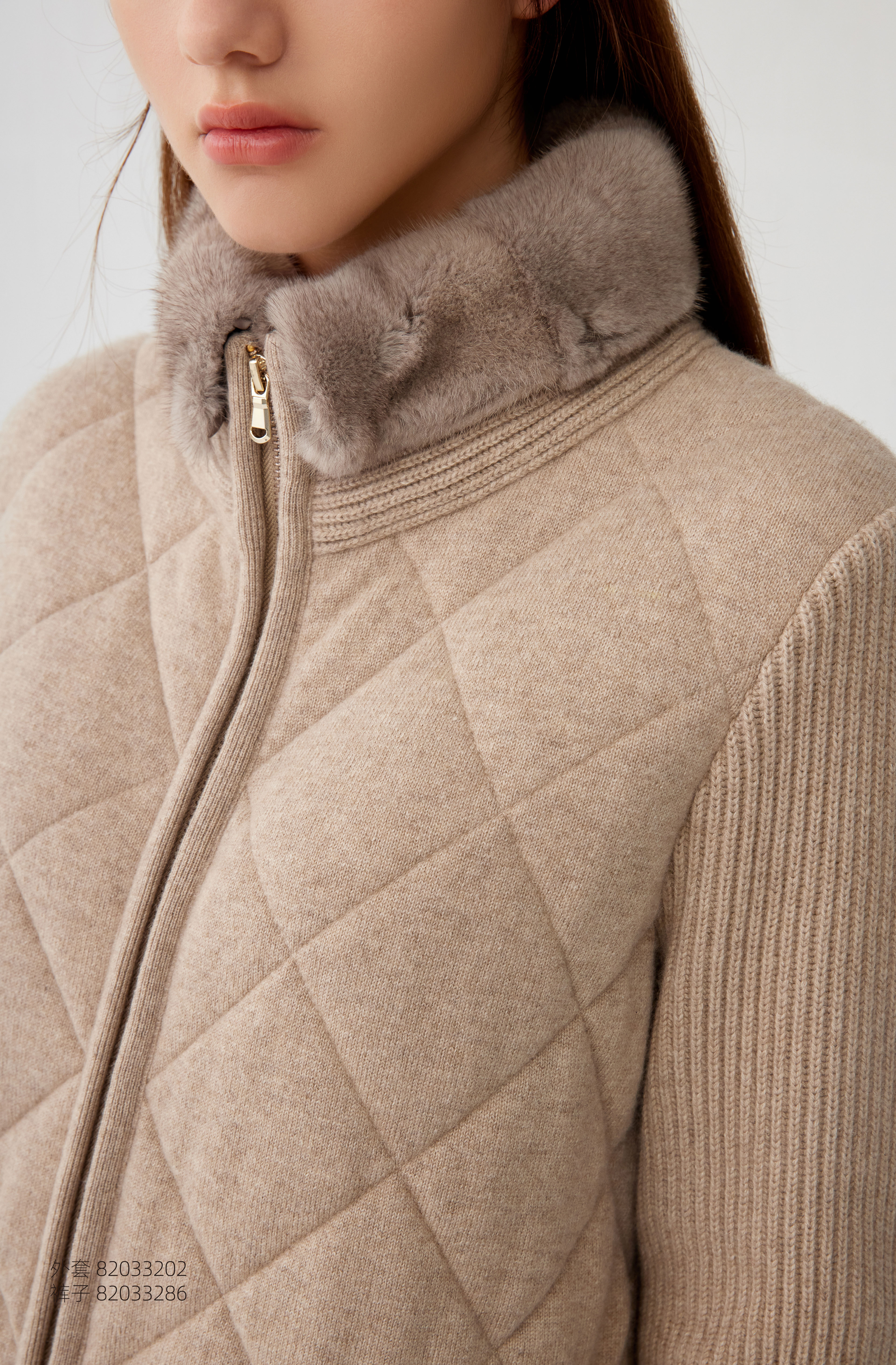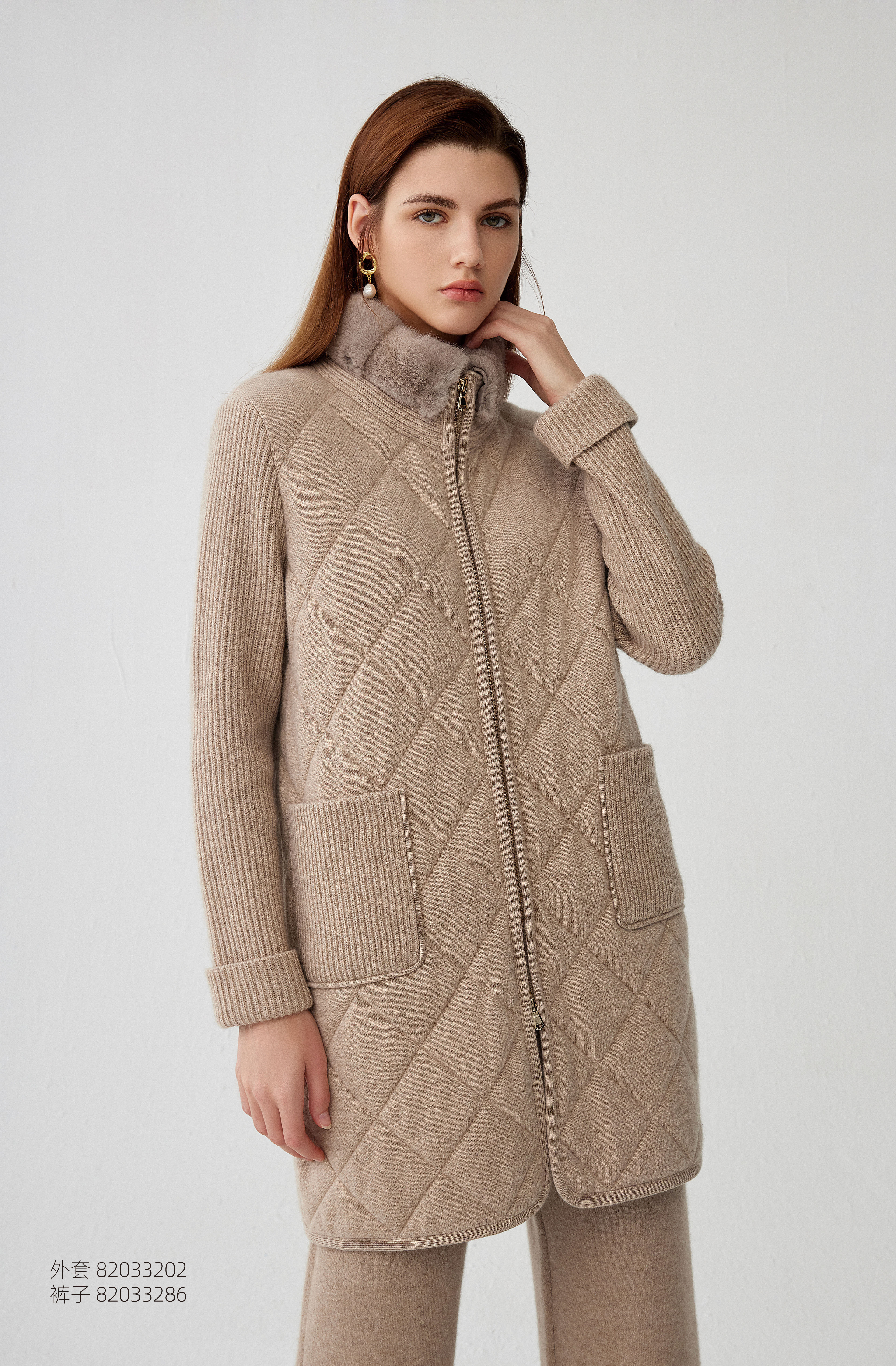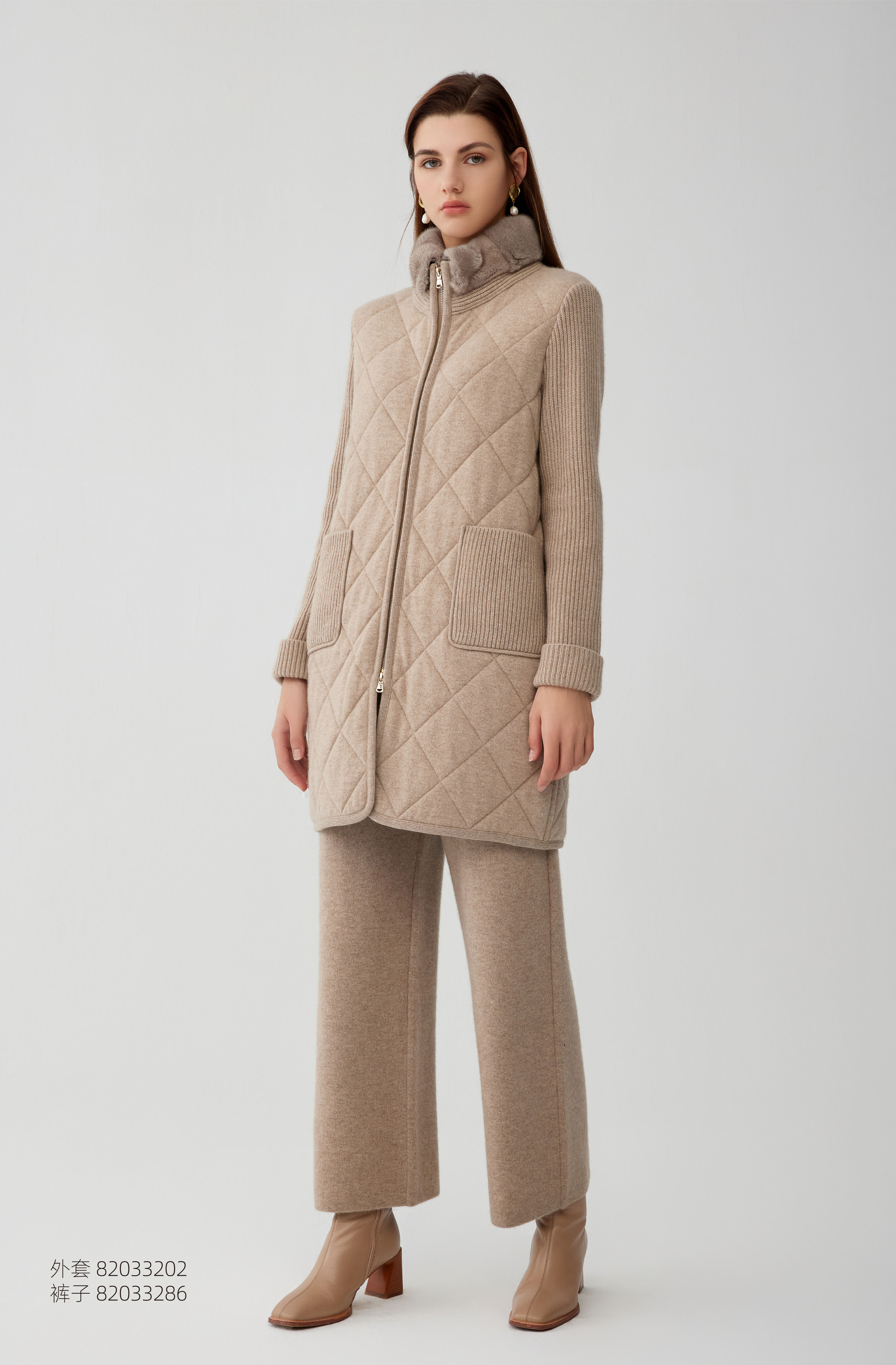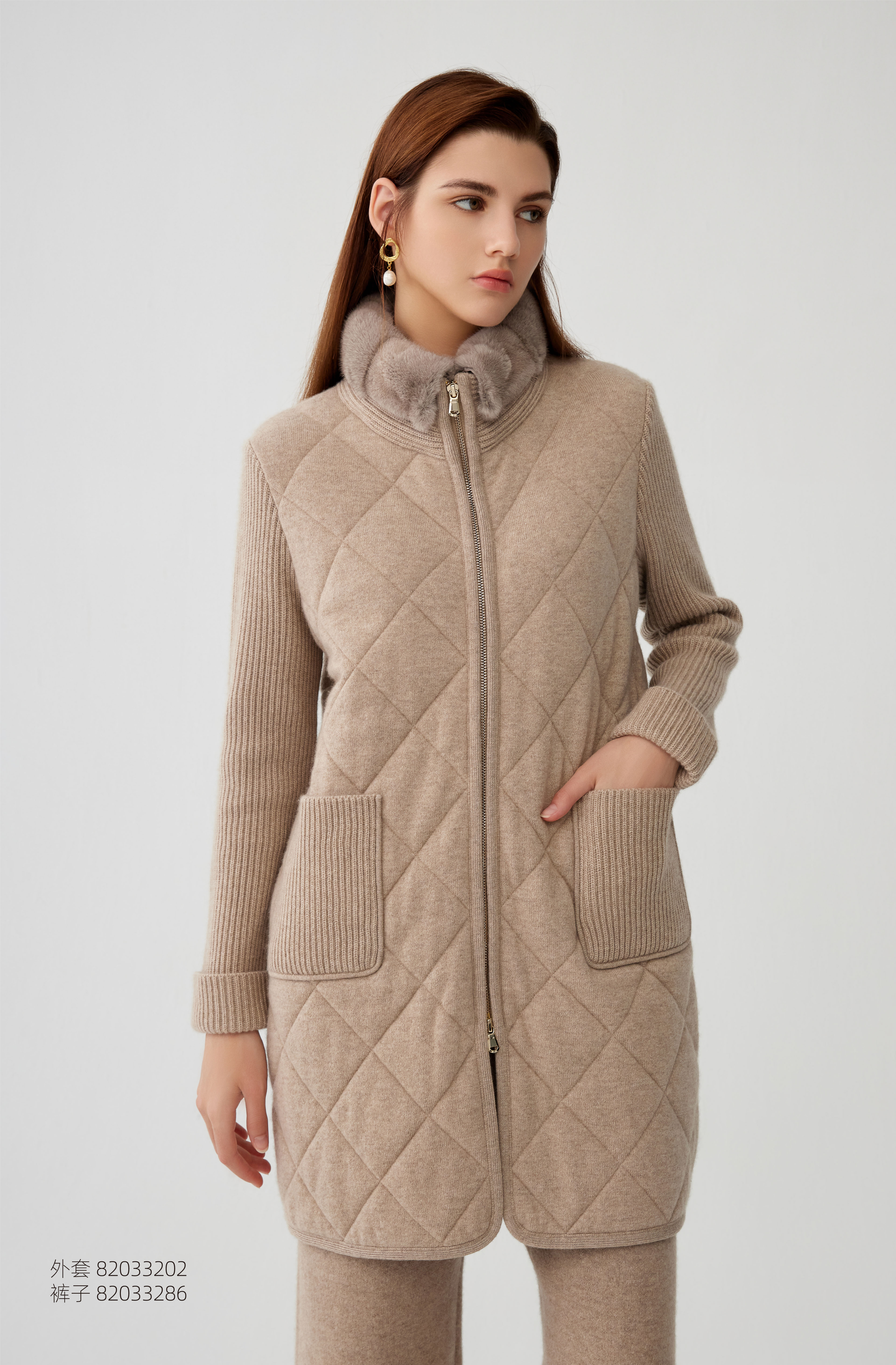 【中长款水貂毛领羊绒外套】羊绒世家秋冬新品女士100%羊绒外套拼接气质款外套