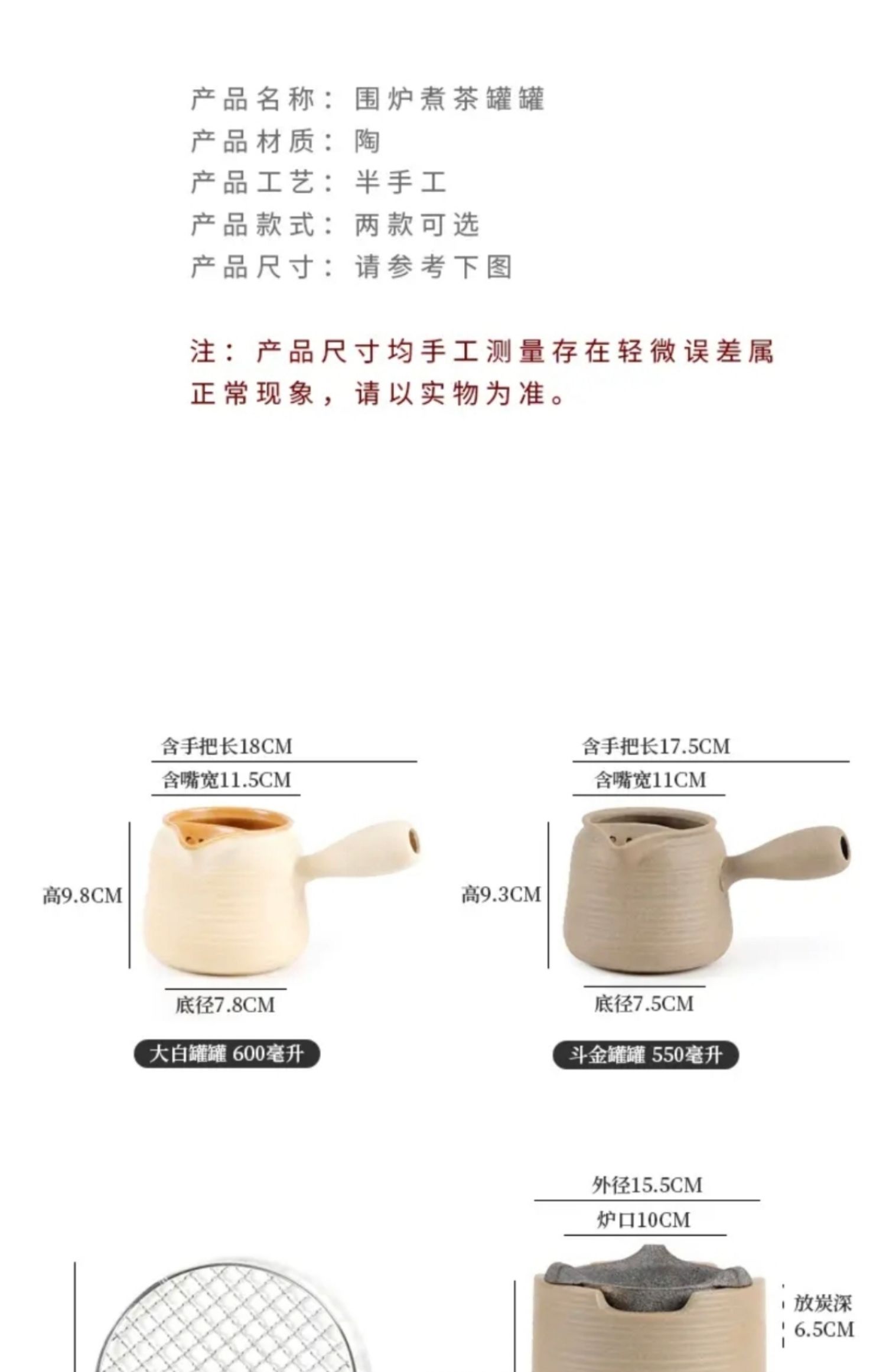 汉陶 大白罐罐茶 煮茶器 茶具套装户外煮茶壶 外庭院功夫小茶壶陶瓷炭火围炉煮茶炉子