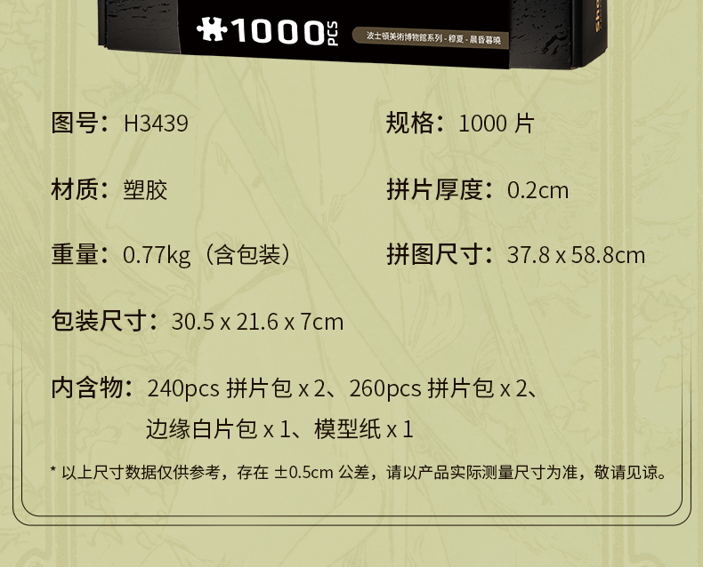 1000片 平面塑料拼图 H3439 波士顿美术博物馆系列-穆夏-晨昏暮晓
