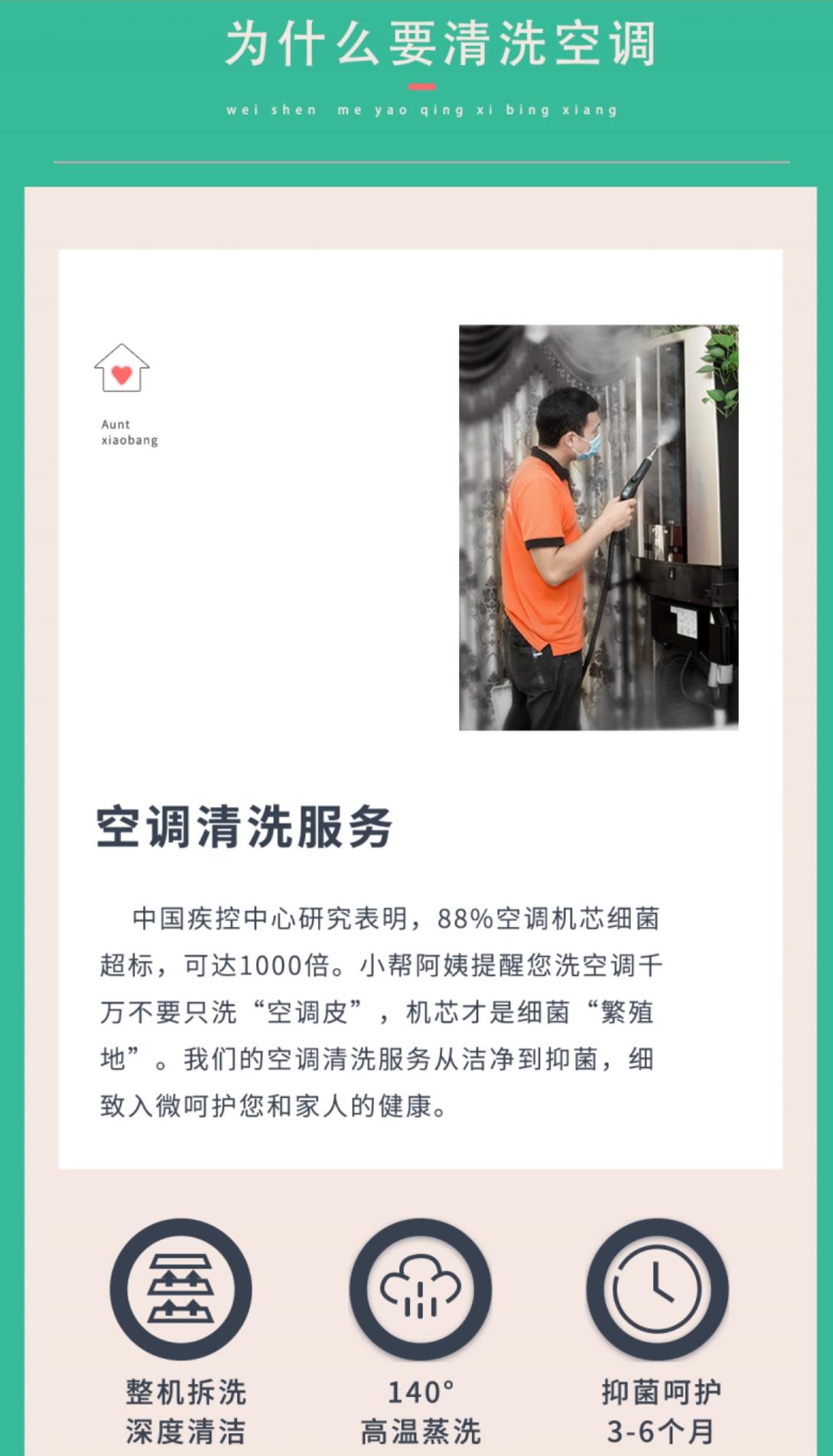 1.空调清洗服务,上门服务时间为8:00-12:00,14:00-18:00,超出时间暂无法提供服务,请根据家庭情况预约合适人员上门!如遇服务旺季,请提前预约,以免耽误您的排程;