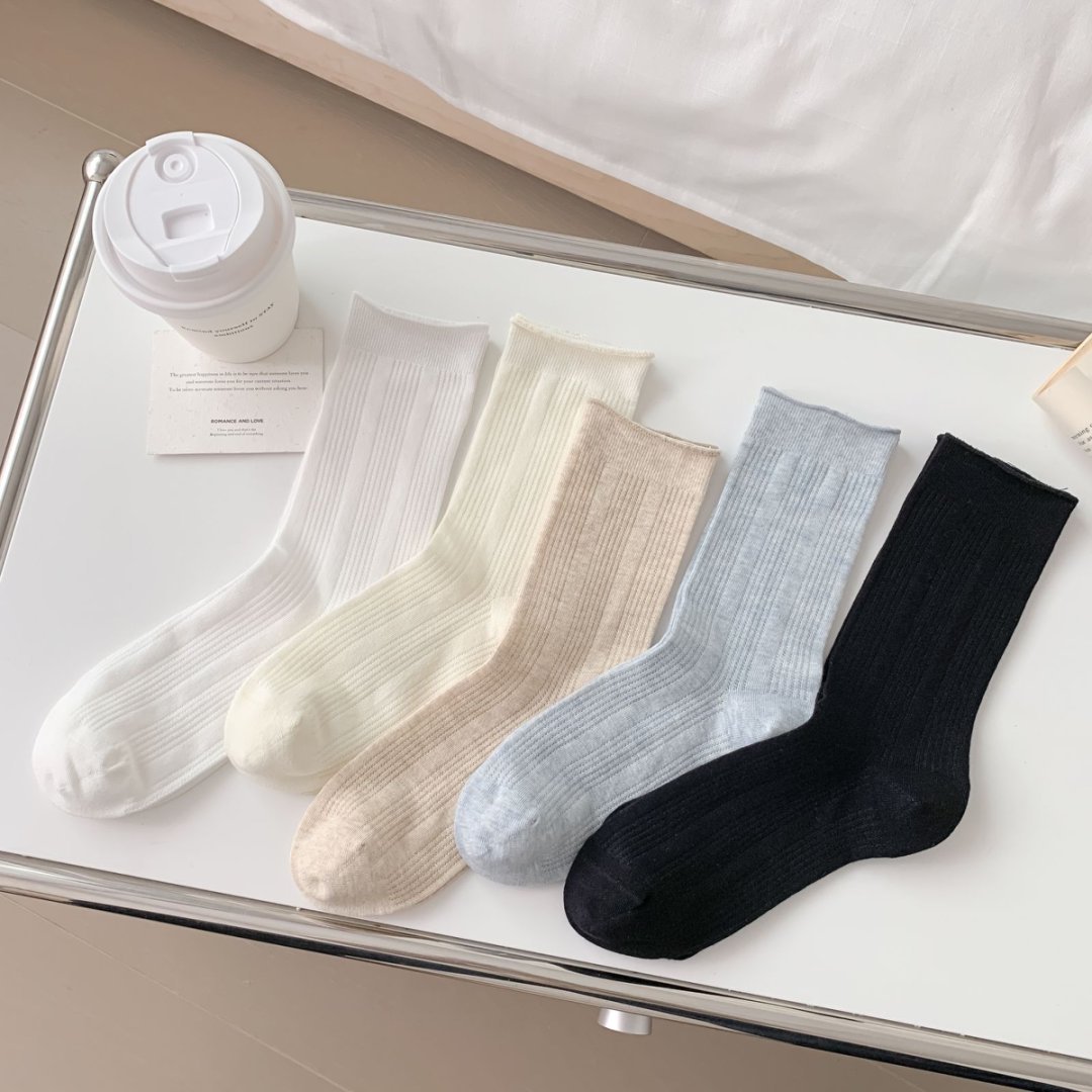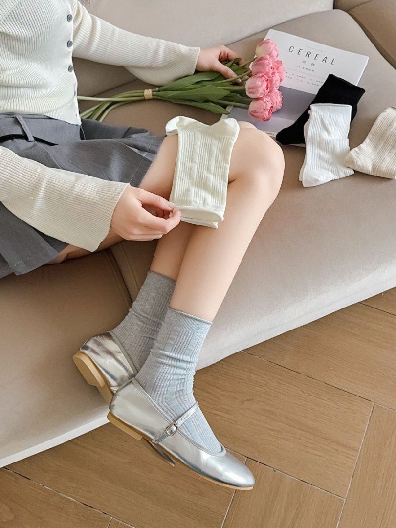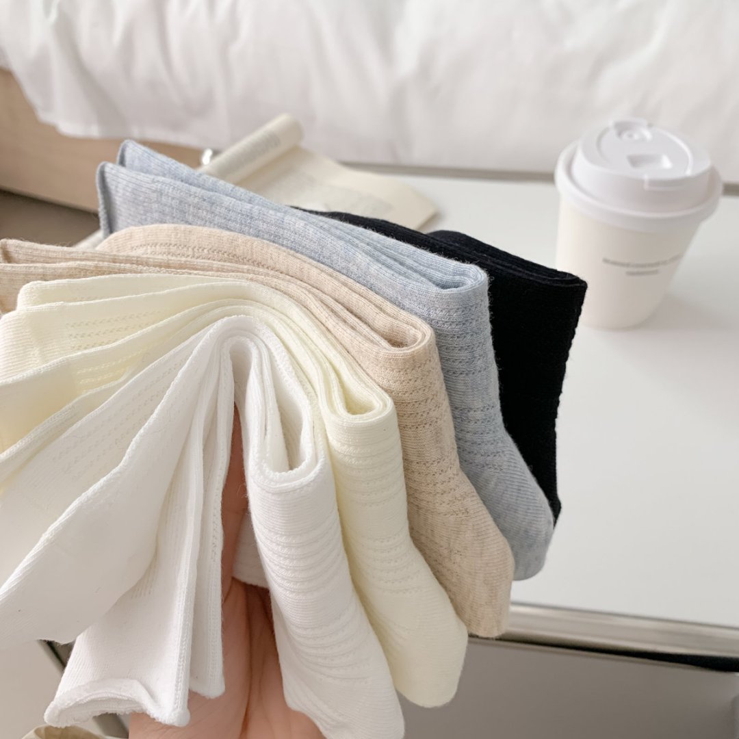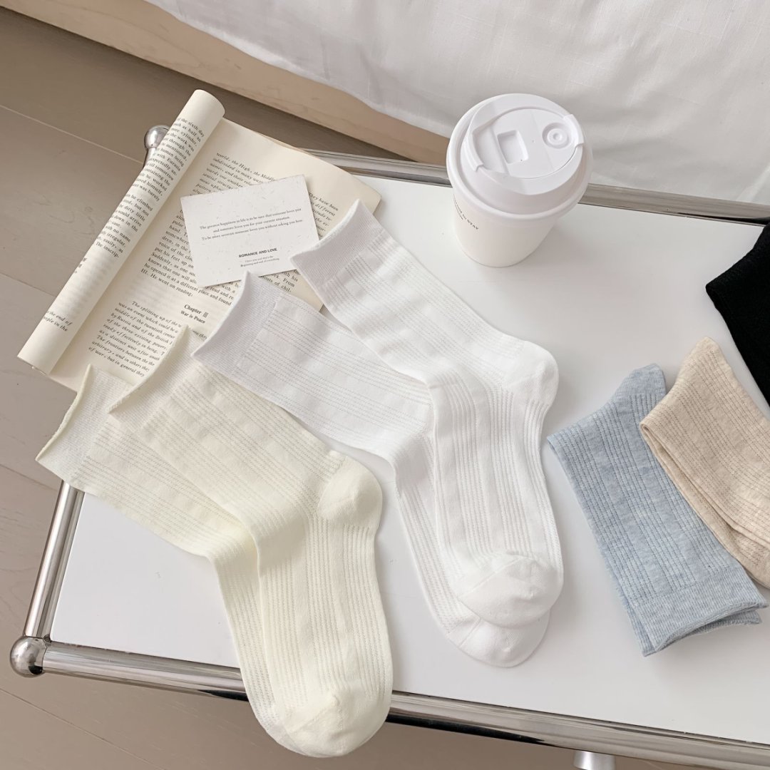 【39元5双,下单拍5】Mekki袜子女春夏季轻薄透气堆堆袜新款中筒袜纯色竖条网眼ins潮ZXFX2026