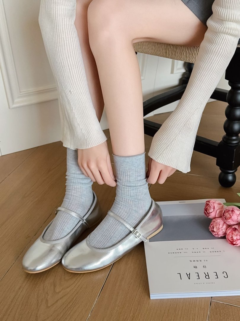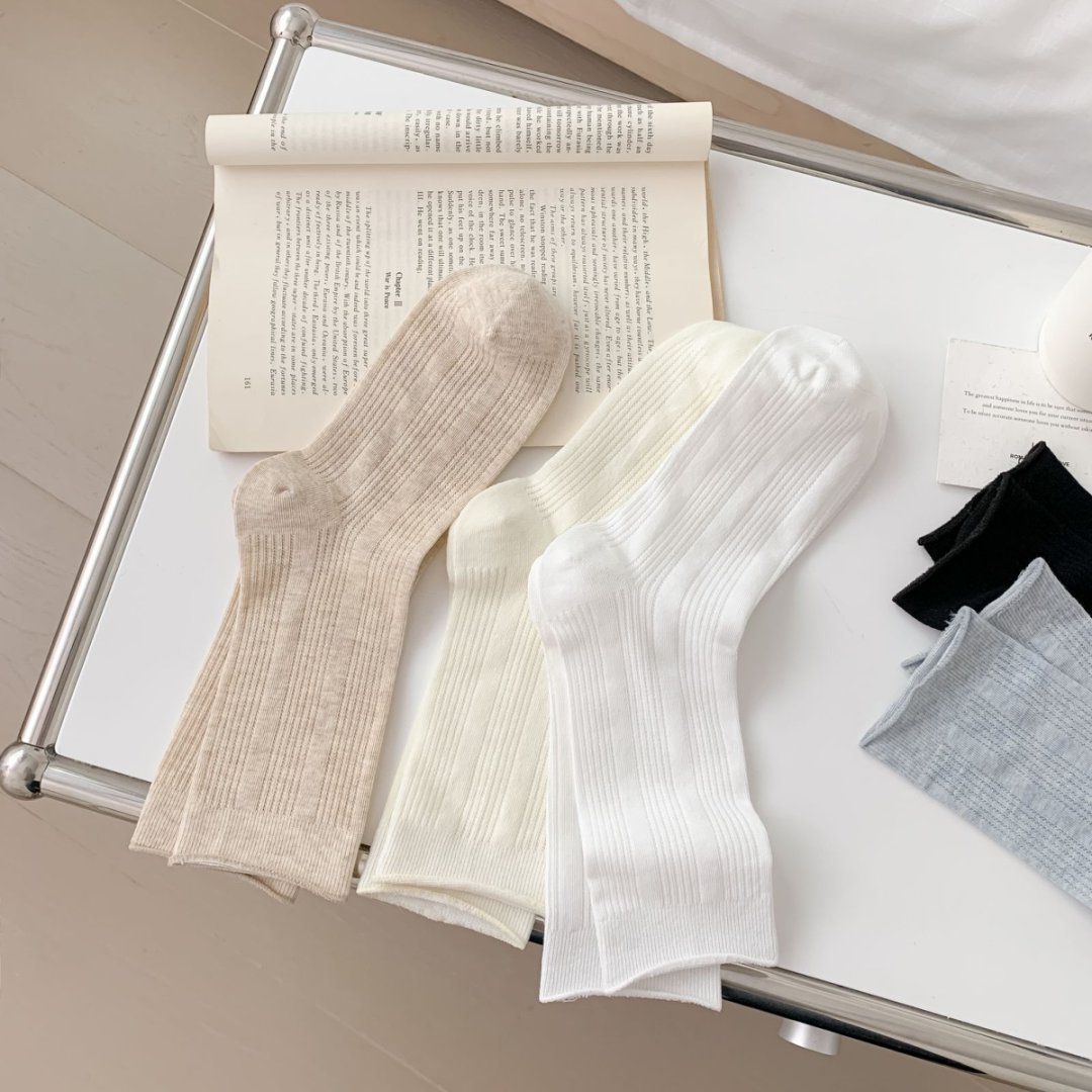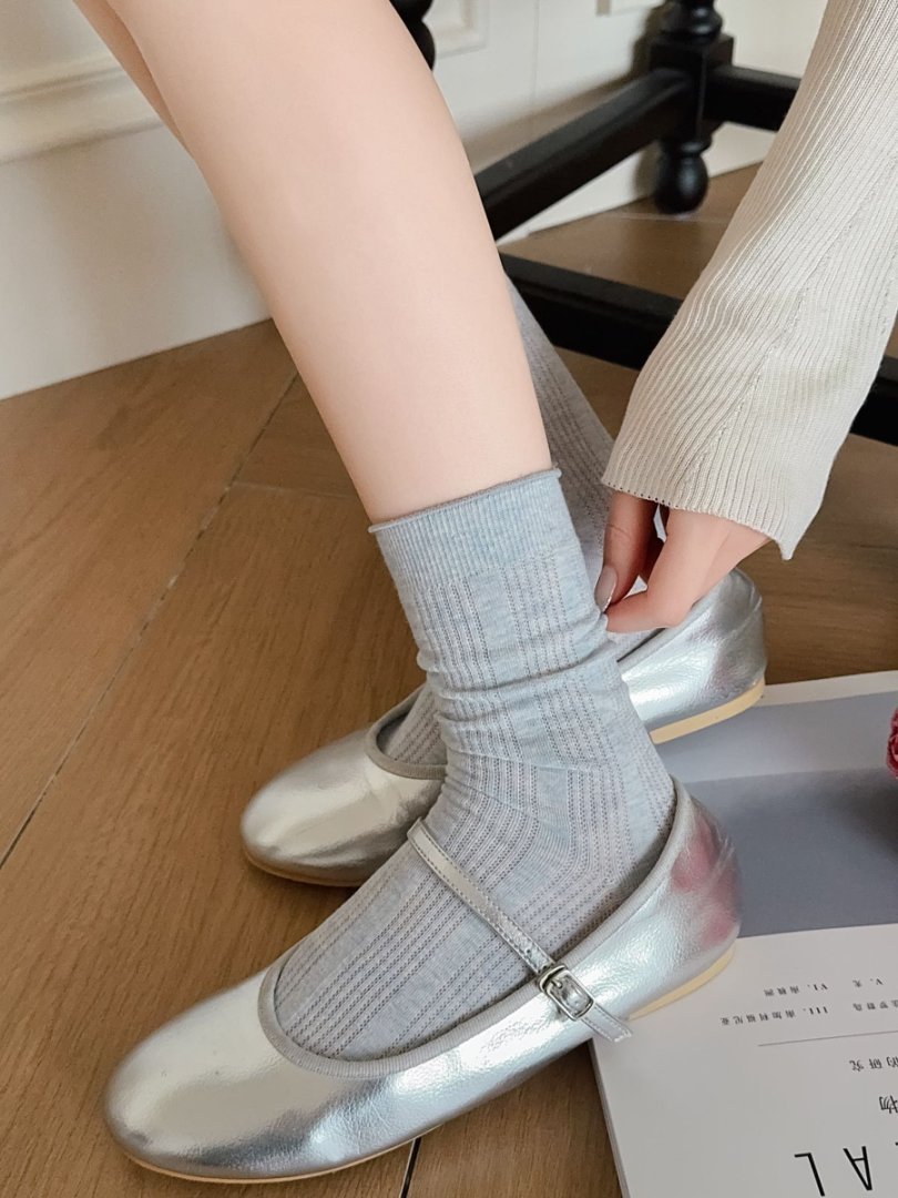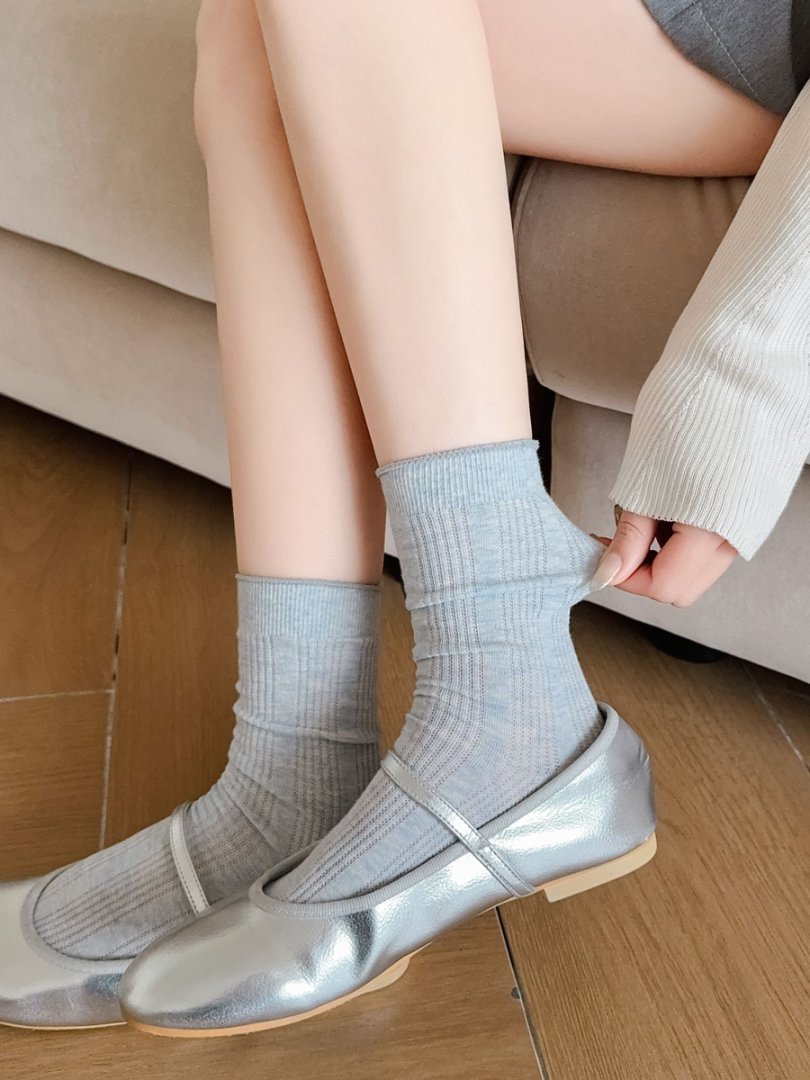 【39元5双,下单拍5】Mekki袜子女春夏季轻薄透气堆堆袜新款中筒袜纯色竖条网眼ins潮ZXFX2026