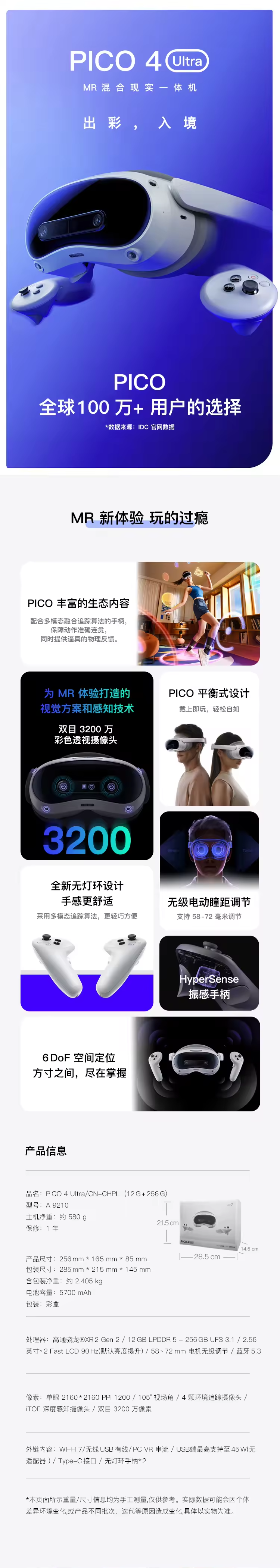 PICO 4 Ultra VR 混合现实一体机