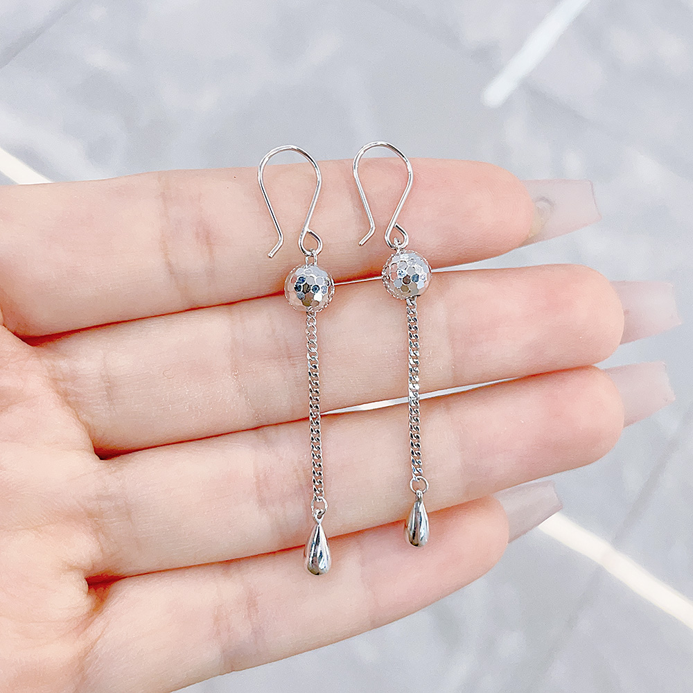 【限时8.8折】【线上铂金馆】PT950 #CNC 铂金空心水滴流苏鱼鳞金珠耳饰耳吊耳钩(PTES00071)预售产品下单后不退款不退货不换货不补差价)