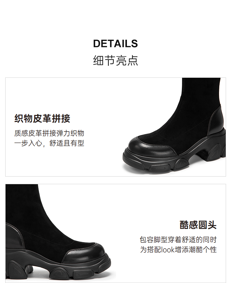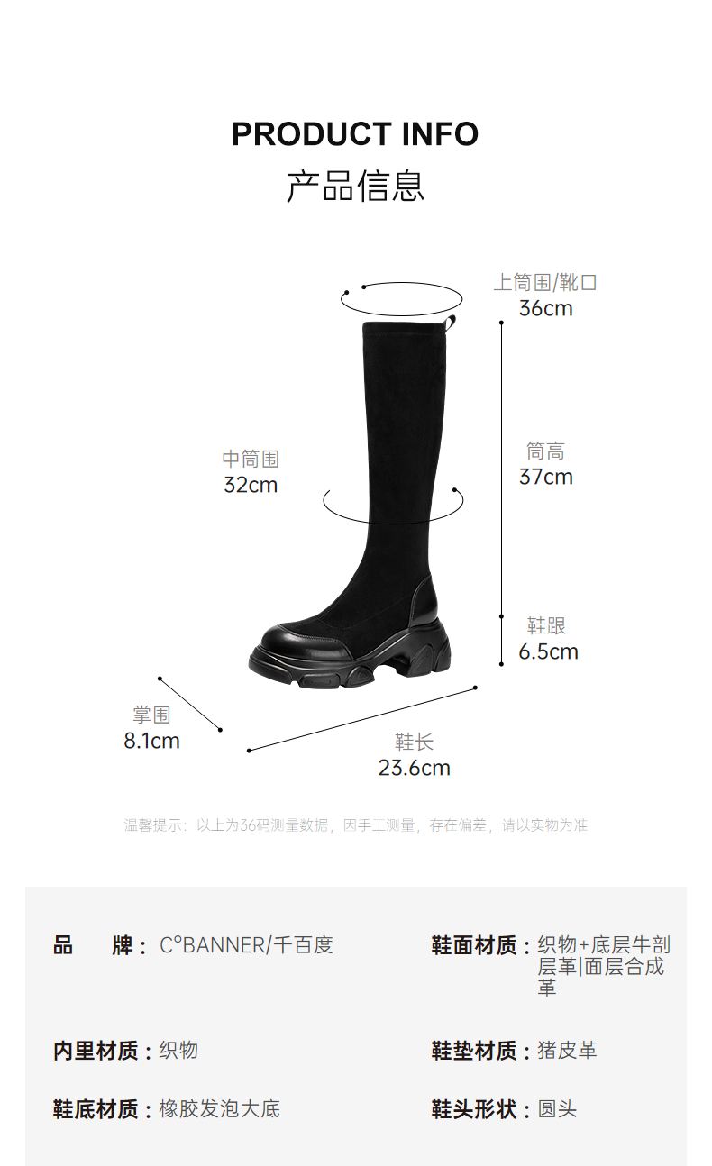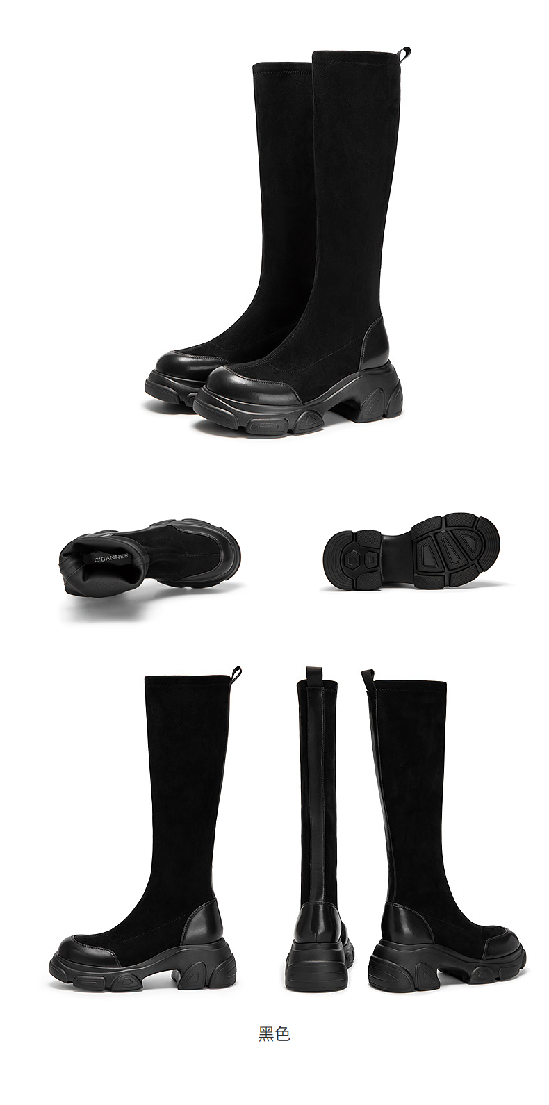 千百度厚底增高弹力靴女美拉德瘦瘦靴骑士靴长靴子A25586186