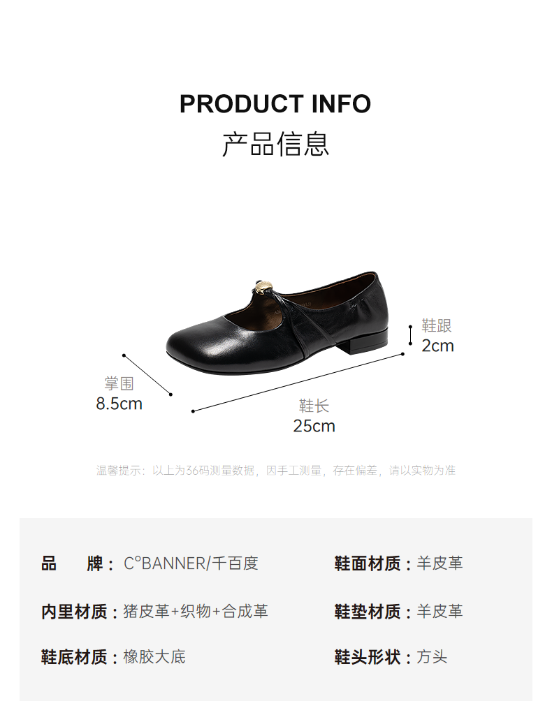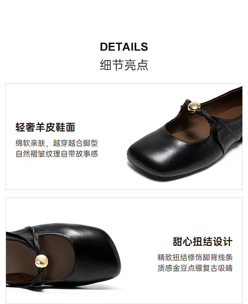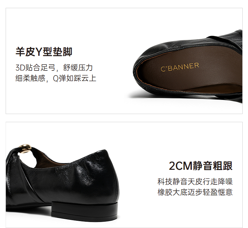 【静音系列】千百度低跟玛丽珍鞋女2026春季新款羊皮浅口平底单鞋A26189703