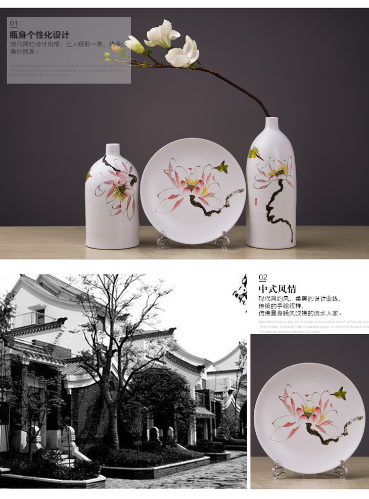 【陶瓷花瓶】景德镇陶瓷工艺品 时尚客厅家居手工摆件 陶艺三件套花瓶花插