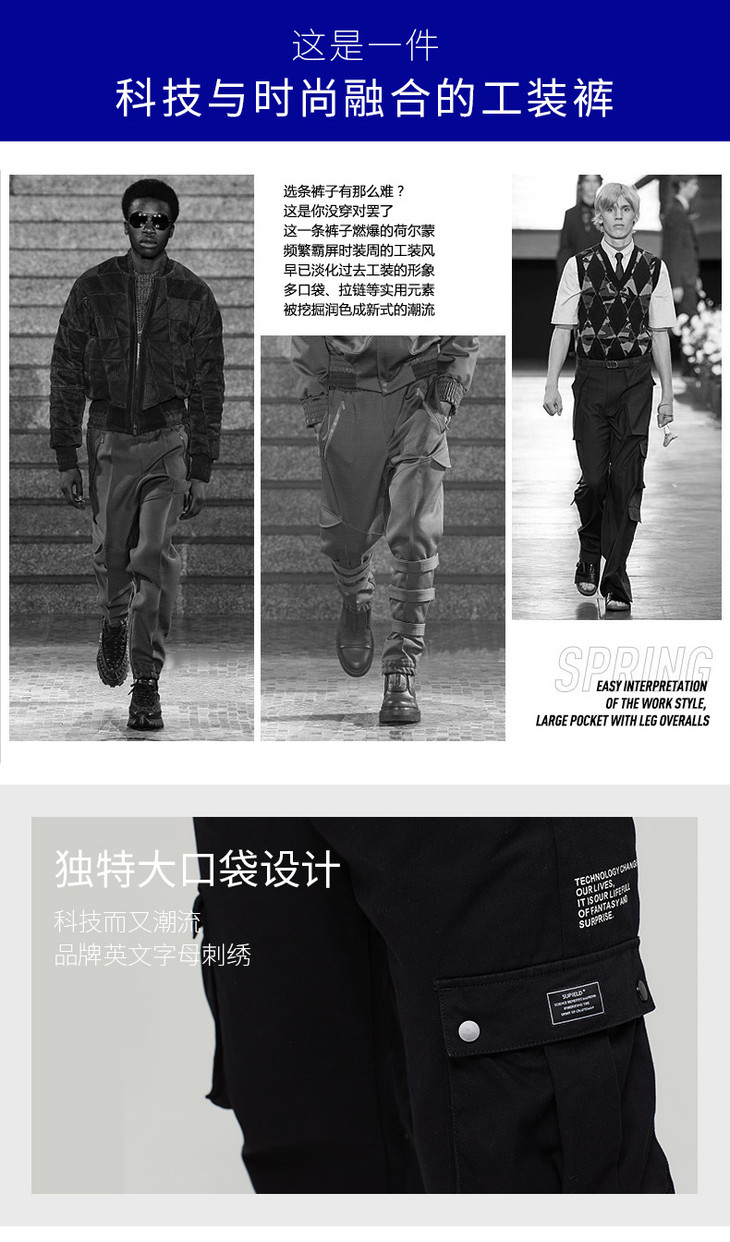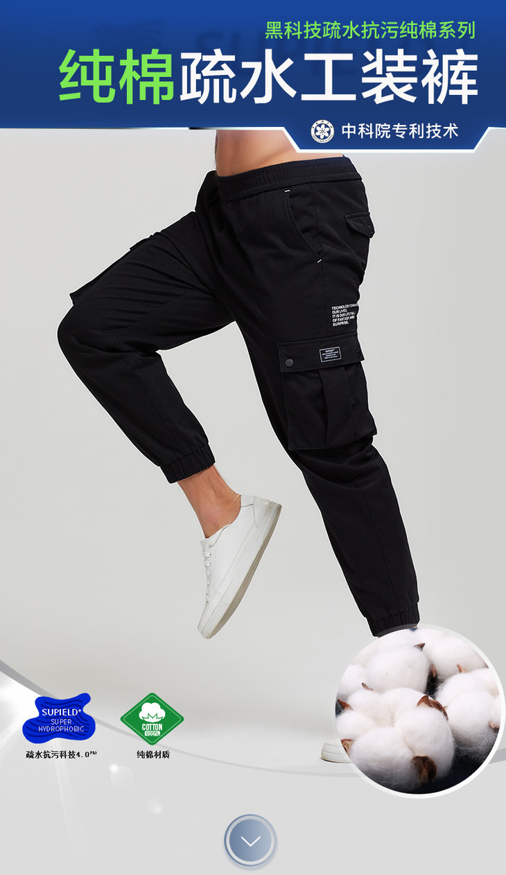Supield素湃黑科技防污工装裤男束脚纯棉潮牌休闲裤薄款