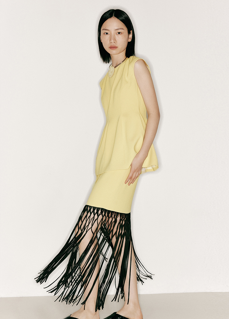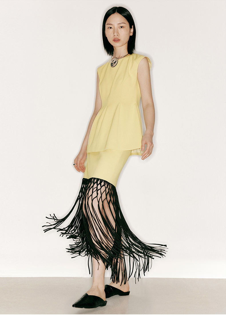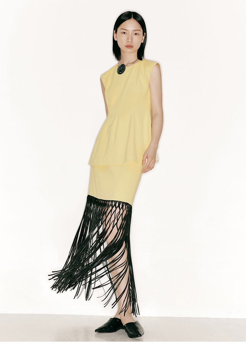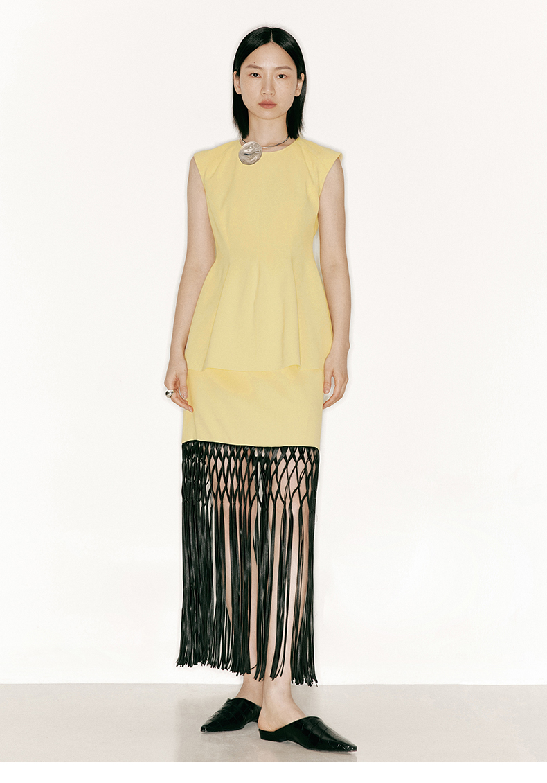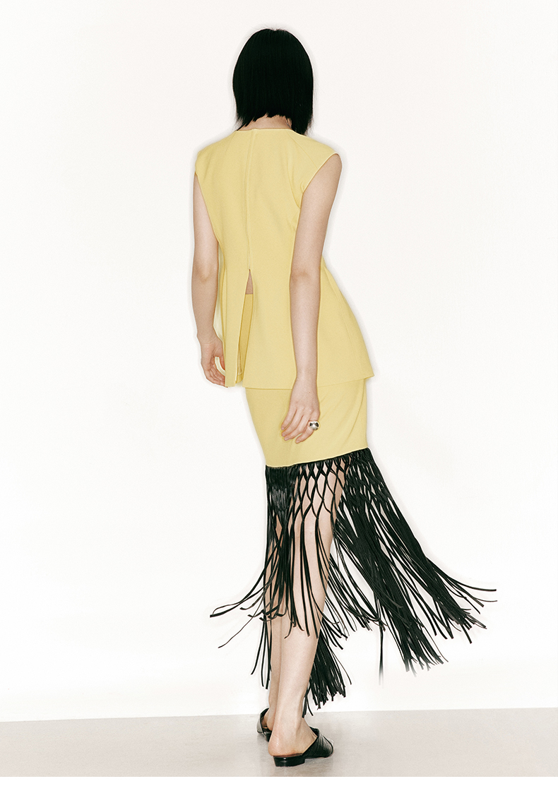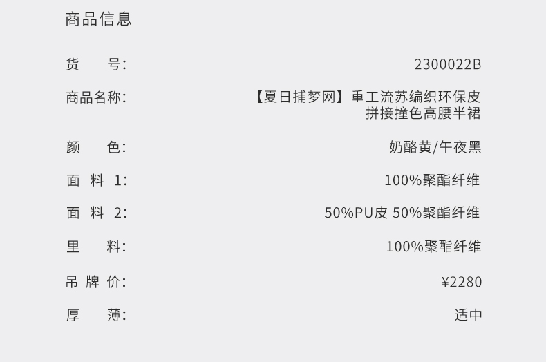 【夏日捕梦网】重工流苏编织环保皮拼接撞色高腰半裙/2300022B