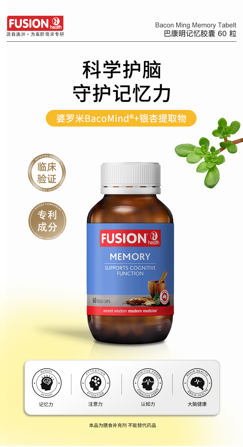 Fusionhealth澳辉生 巴康明记忆胶囊 60粒