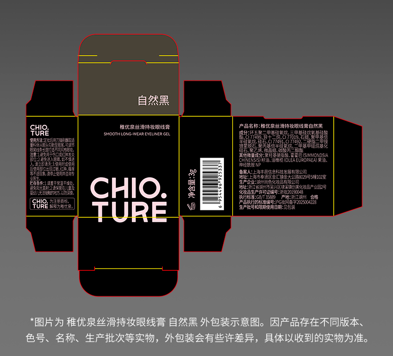 稚优泉(CHIOTURE)丝滑持妆眼线膏防水不易晕染持久自然不脱色眼线印章